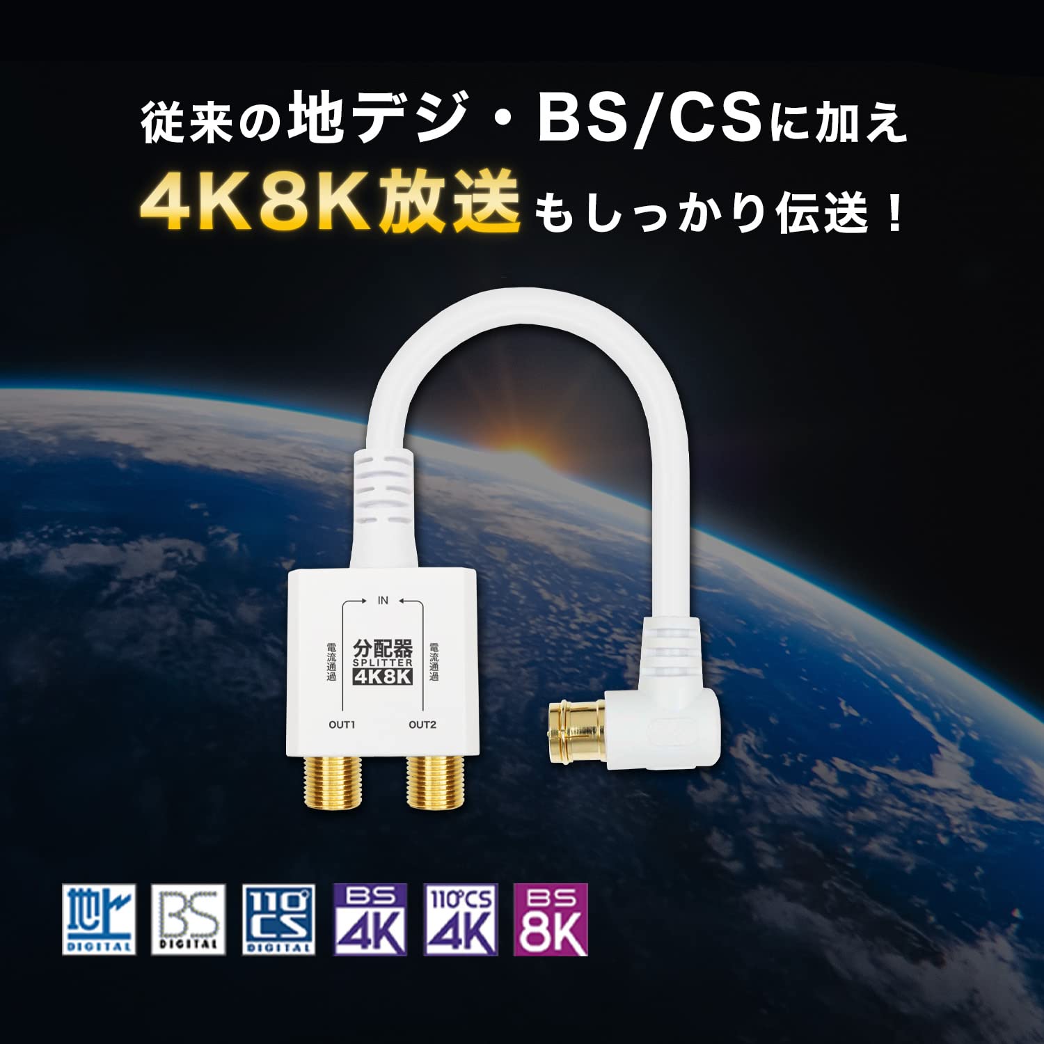 ホーリック アンテナ分配器 【4K8K放送(3224MHz)/BS/CS/地デジ/CATV 対応】 HSマーク登録 ケーブル一体型 10cm ホワイト AP-659WH