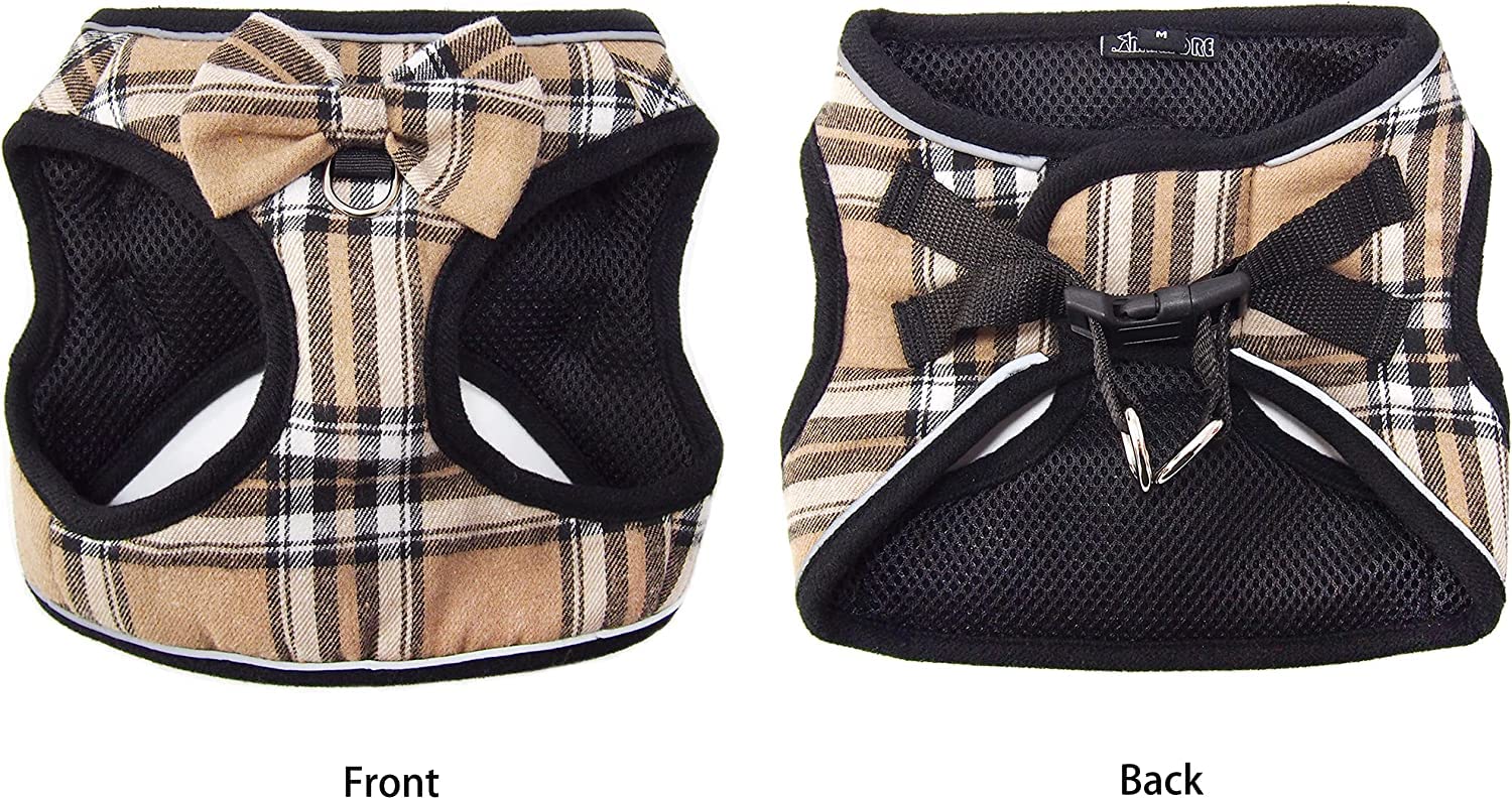 犬用チェック柄ハーネス 超小型犬 小型犬 中型犬 かわいい 抜けない 散歩 ソフト 通気性高い 調節可能 簡単着脱 おしゃれ 人気な胴輪 (カーキチェック柄, L)