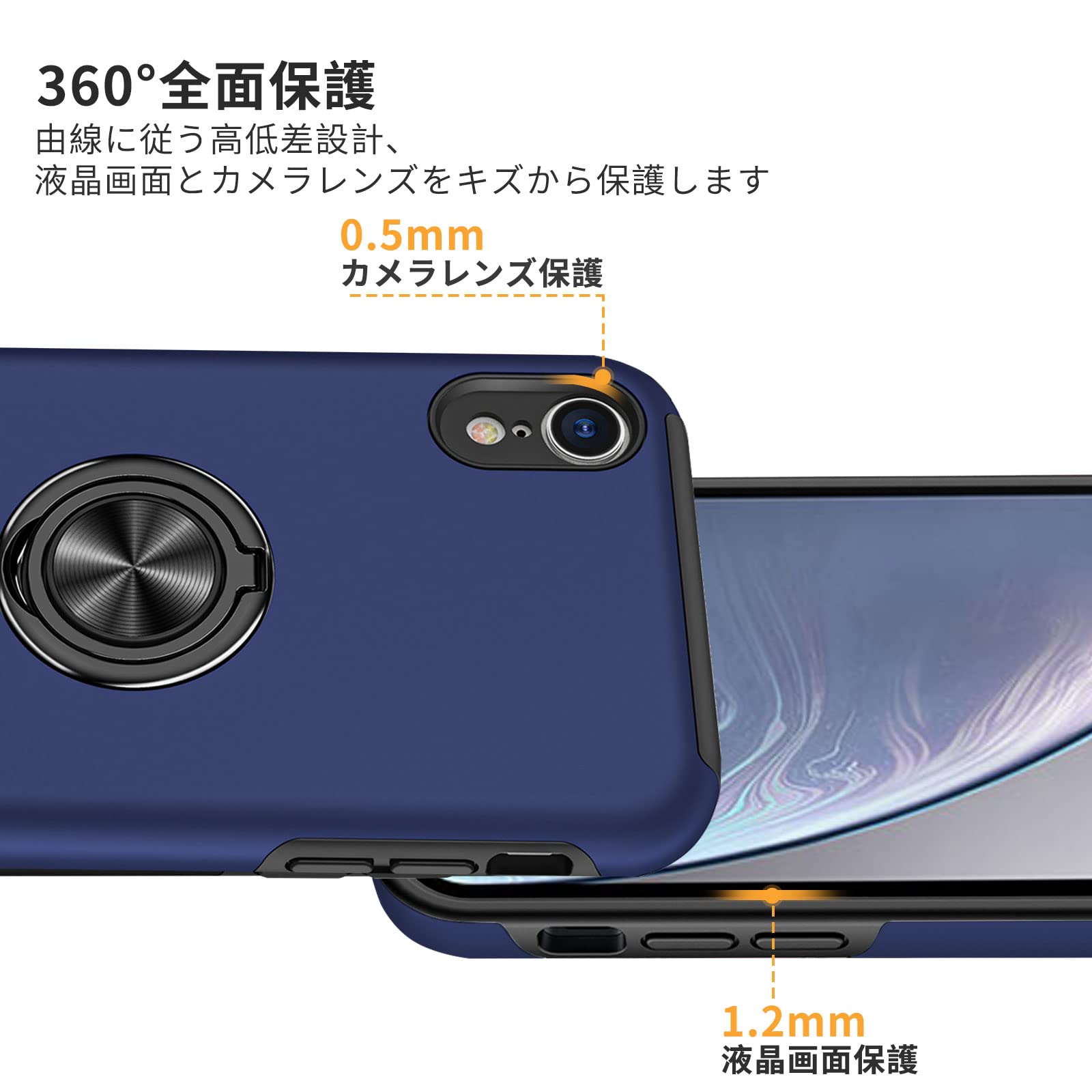 Jaligel iPhone XR ケース iPhone 10r ケース リング付き 耐衝撃 落下衝撃吸収 TPU PC 車載ホルダー対応 スタンド機能 スマホケース 防塵 滑り止め 落下防止 擦り傷防止 取り出し易い 一体型 全面保護カバー アイフォンケース 旅行 オフィス 室内 アウトドア 6.1インチ アイフォンxr カバー(青)