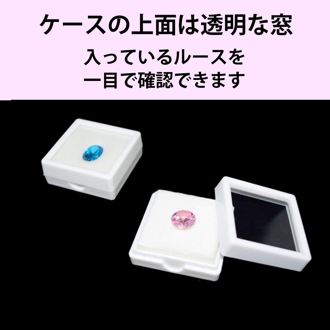 裸石、ルースを保管するためのケース:ジュエリーに加工する前の裸石、ルースを収納しておくためのケースです。ケース内にはスポンジが入っているので宝石をしっかり収めることができ、傷つける心配がありません。宝石以外にもピアスやリングなど小さめのジュエリーをしまっておくのに便利です。