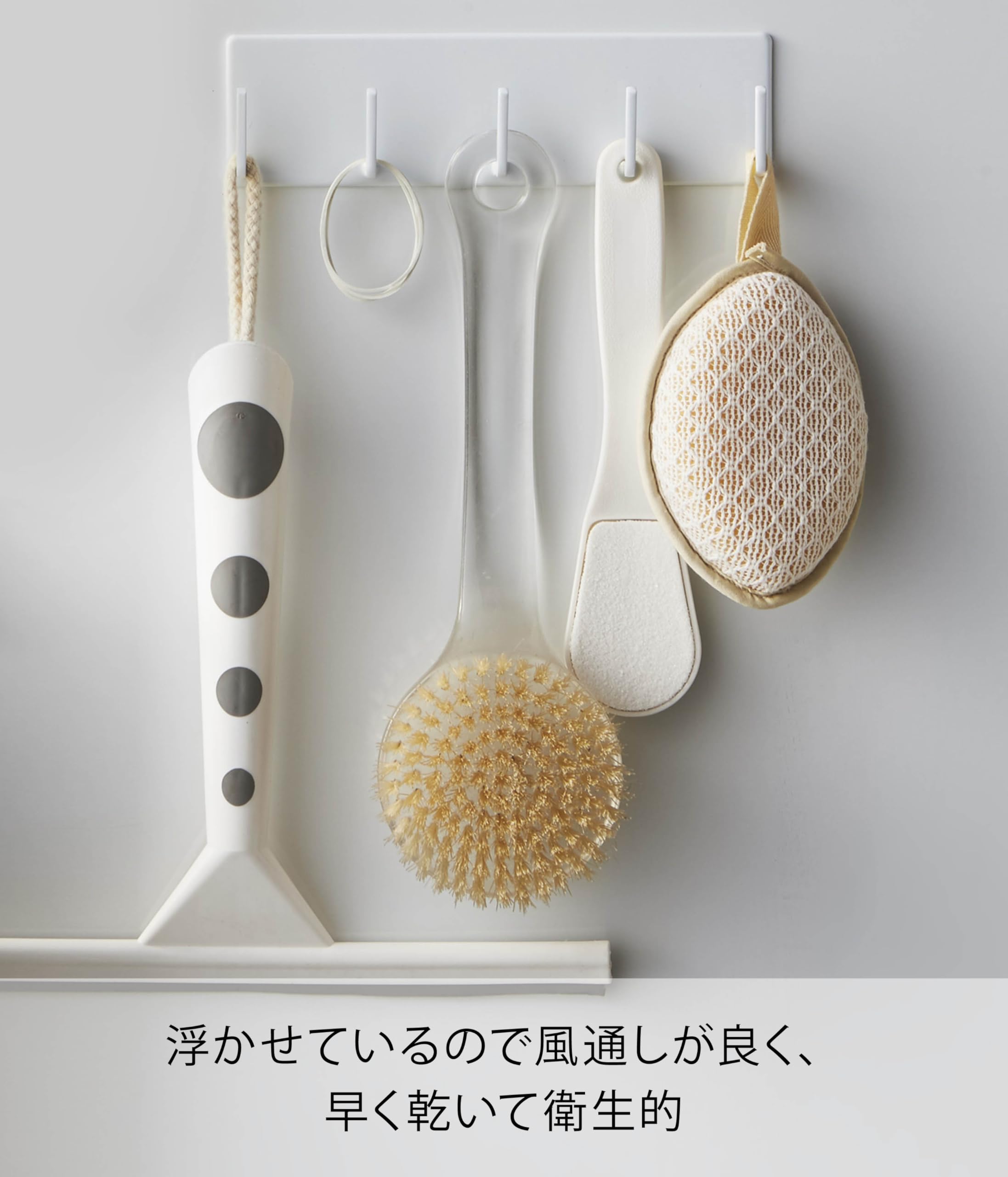 マグネットが付く浴室壁面に簡単取り付けの5連フック。