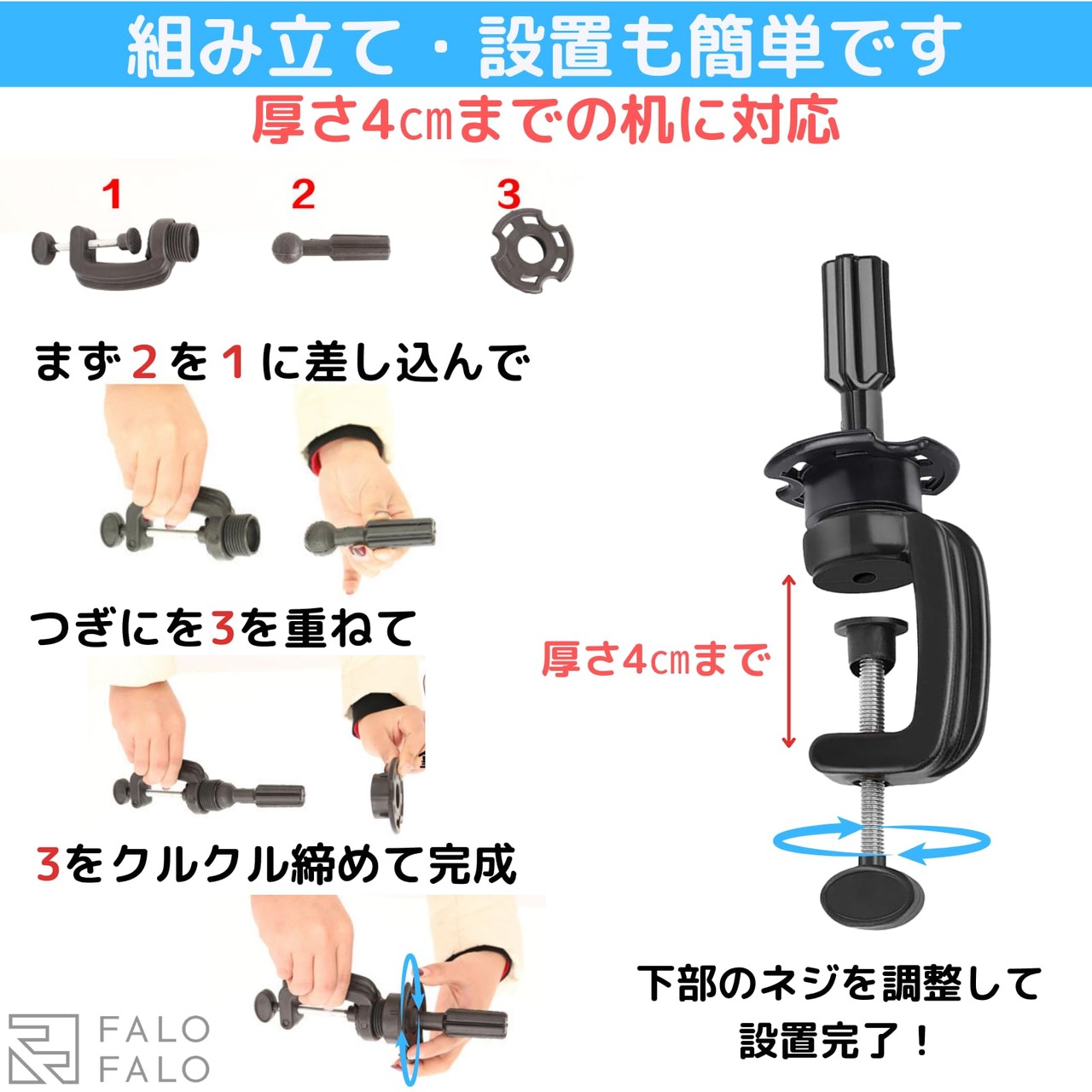 【簡単固定】テーブルや作業台にヘッドマネキンヘッドを簡単に固定できます。 【軽量】プラスチックで軽く、本体の分解・組み立ても簡単、持ち運びにも便利です。 【多用途】編み込み練習、カット練習に最適クランプです。