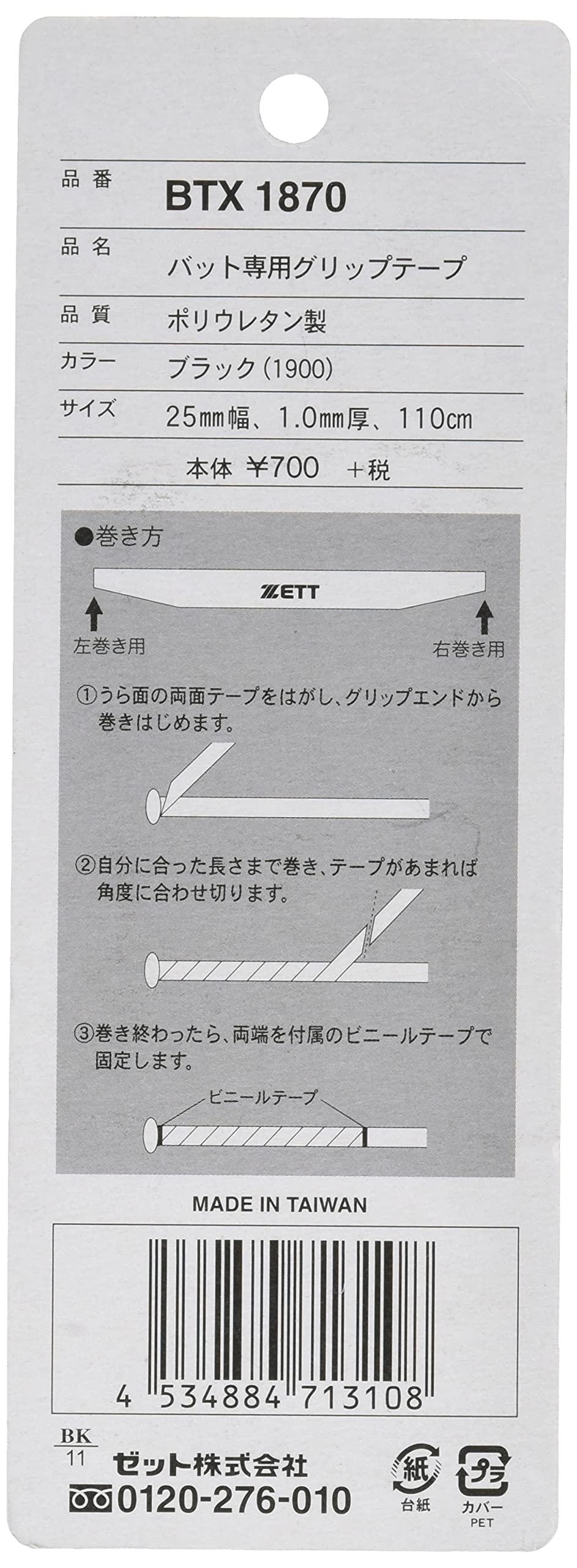 ゼット(ZETT)野球 バット用 グリップテープ (ソフトウェット) ブラック BTX1870