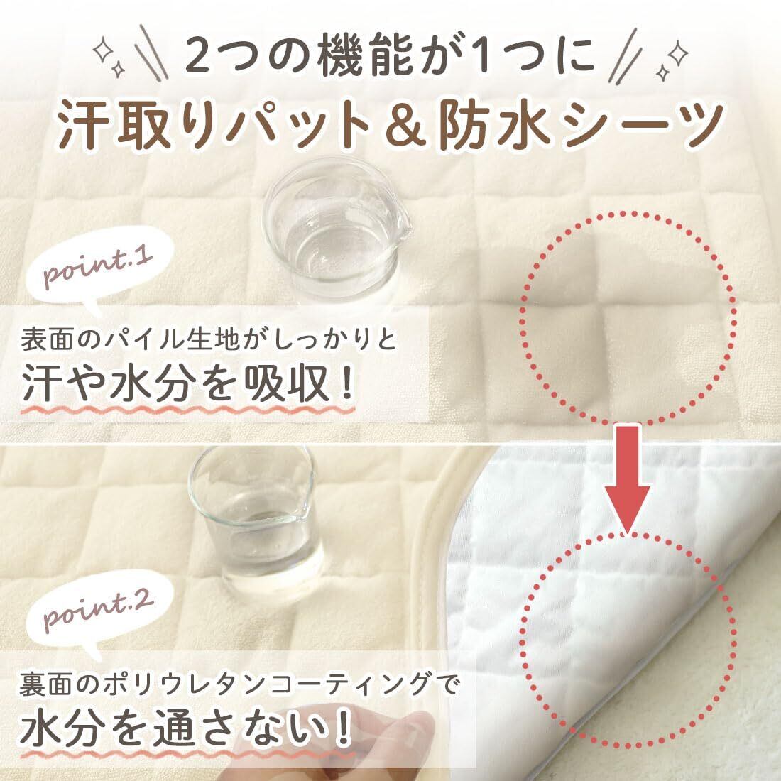 【在庫処分】(ケラッタ) 防水シーツ 敷きパッド ベビー おねしょシーツ 2枚組 乾燥機OK 防水 【1枚2役・天然由来抗菌】ふわふわパイル地 綿100% 赤ちゃん 保育園 四隅ゴム付 くすみカラー (70×120cm ミルキーホワイト×ミルキーホワイト)