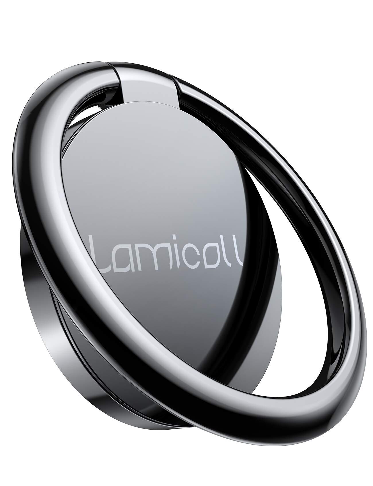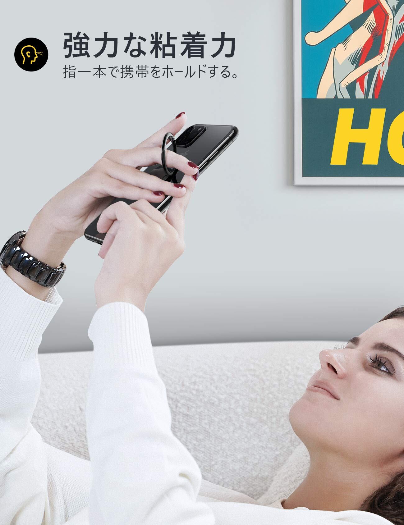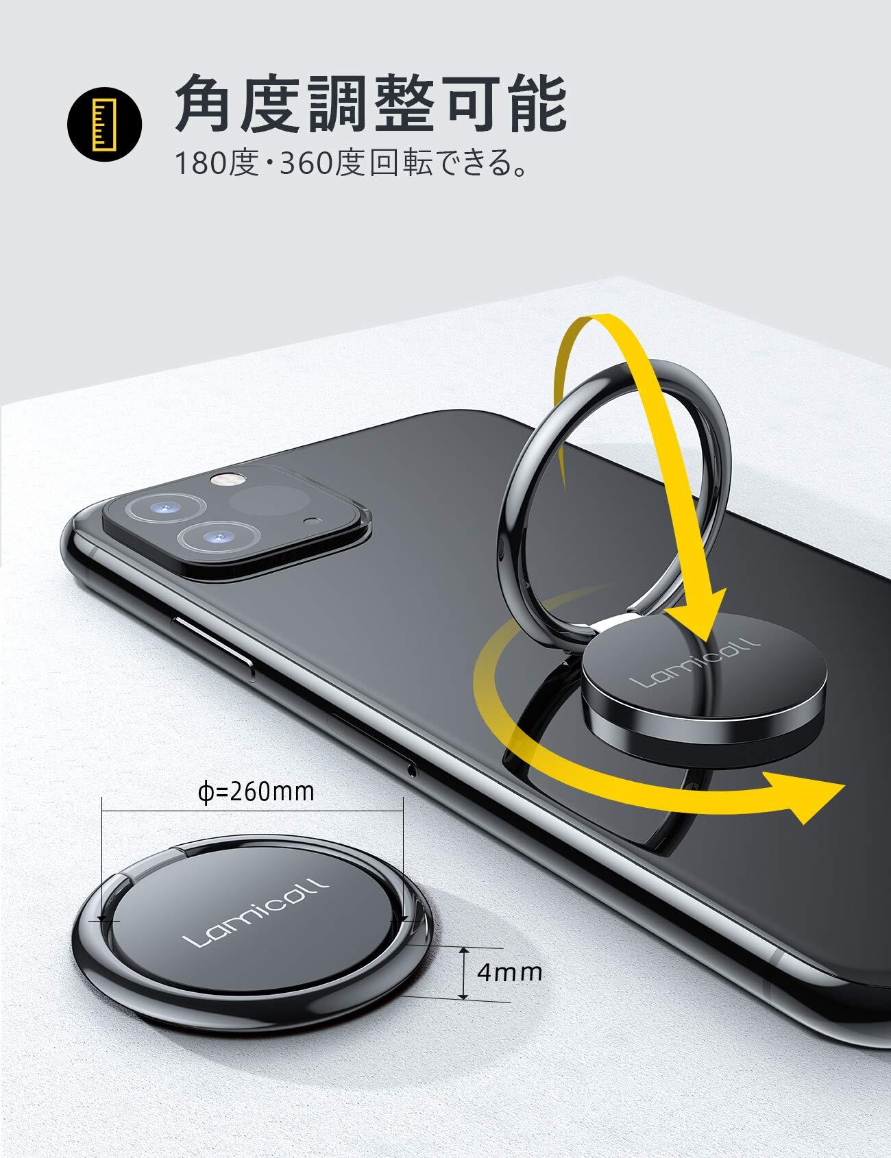 Lomicall スマホリング 4㎜ 薄い 180度 360度回転式 : 携帯電話 指輪型 ホールドリングスタンド 機能 フィンガーリング 薄型 アイホン 指リング 落下防止 角度調整可能 ケイタイ 丸型 取り外し 車載磁石ホルダー対応 2025 iPhone 17 17pro Air 16 16Plus Pro Max 15 14 13 ミニ XS XR X se アンドロイド に対応 ブラック