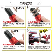 ●【ロックリンク式でらくらくトルク設定】ロックリングを下げたらロックが解除されます。ロックリングを下げたまま、グリップを回転してトルク値を設定します。ロックリングを上げるとトルク値が固定されます。しっかりロックするので作業中にトルク値がズレる心配も無し!