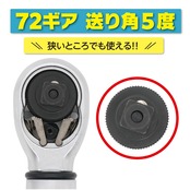 ●【72枚ギア】送り角度5°と細やかな送り角度なので、振り幅の制限された狭い場所などにも適しており、抜群の作業効率を発揮し素早く締め付け作業が出来ます。