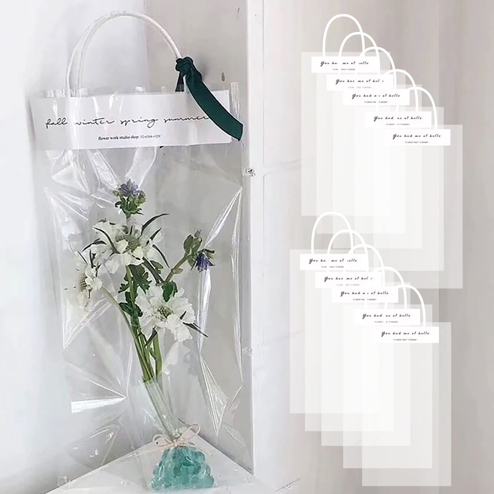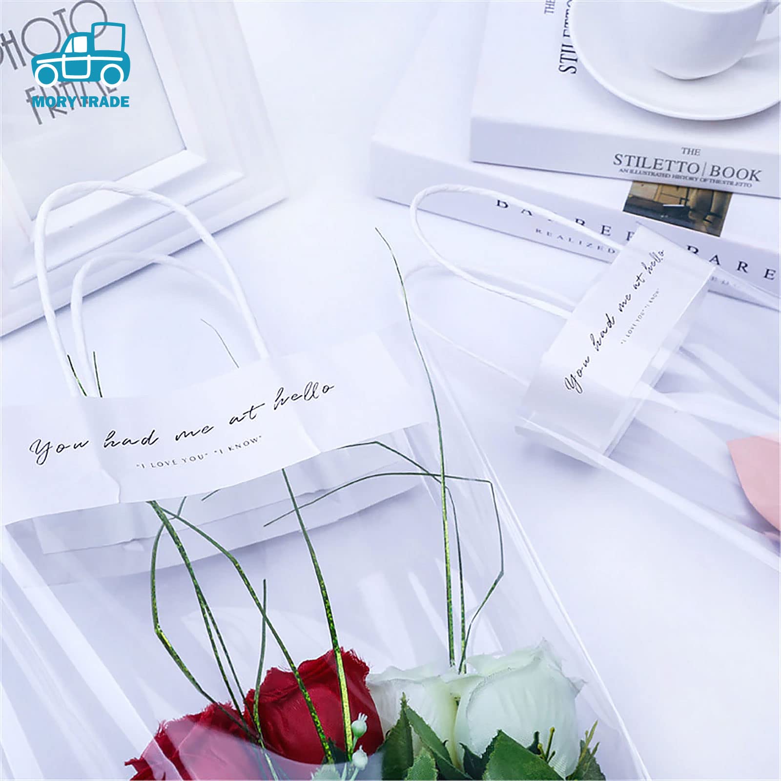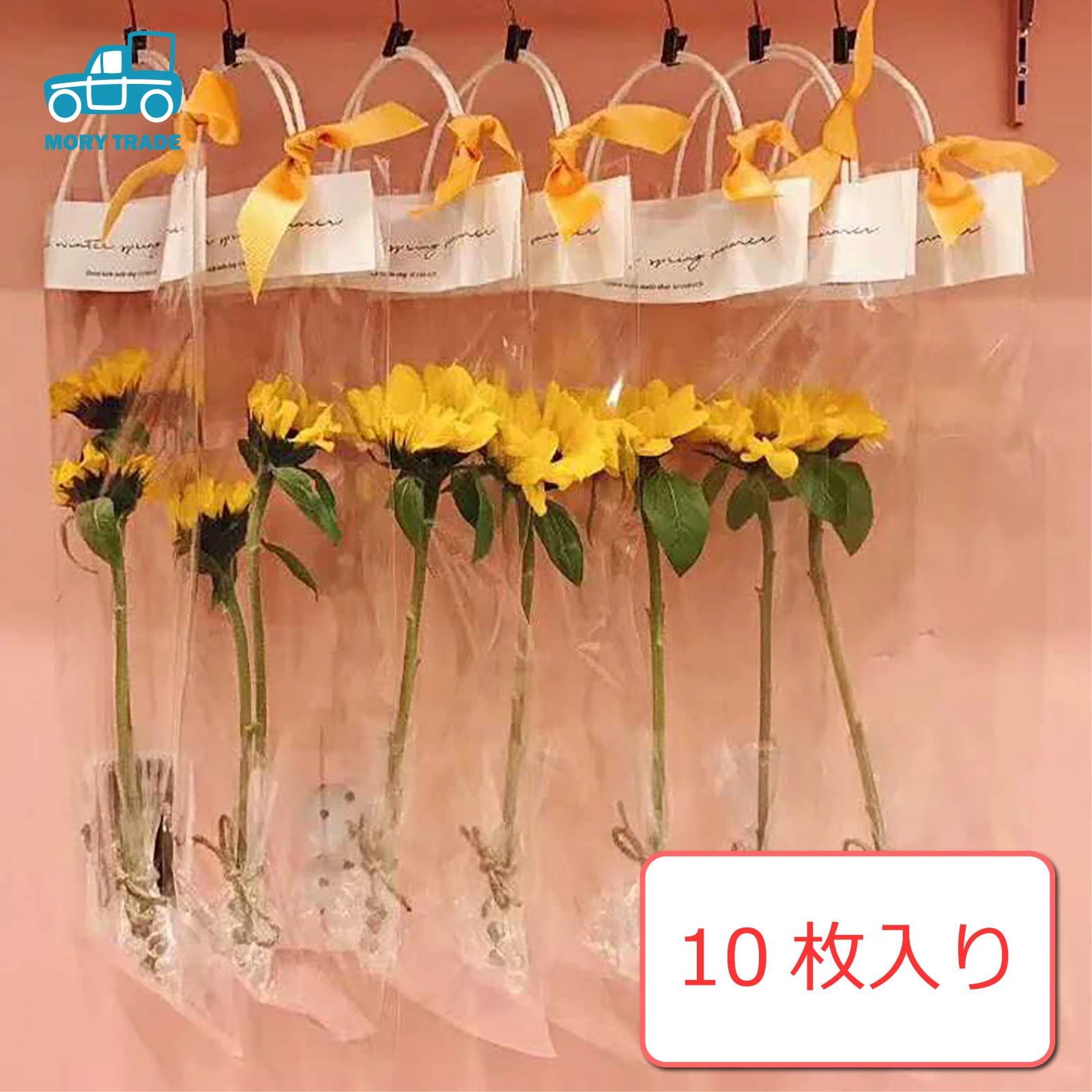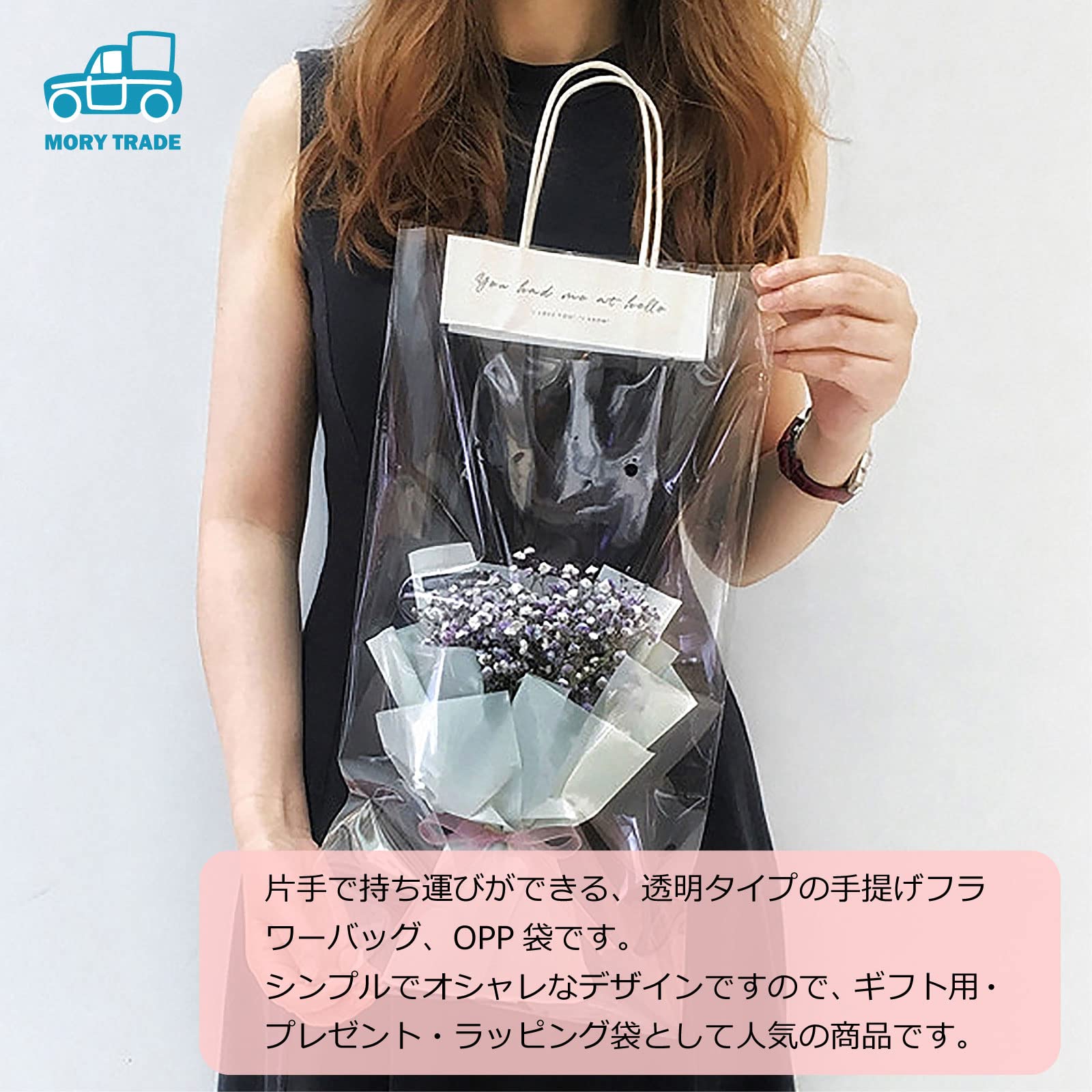 MORYTRADE フラワーバッグ 花 袋 持ち運び ラッピングバッグ 手提げ 生花 プレゼント M(25×46cm)10枚 透明