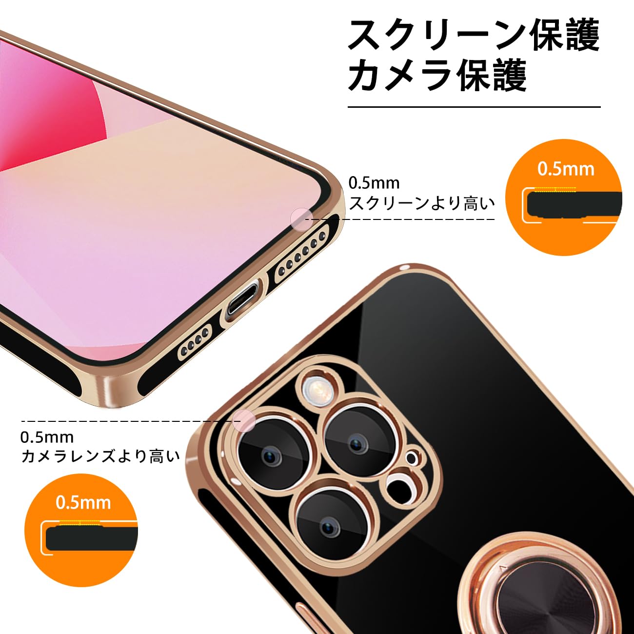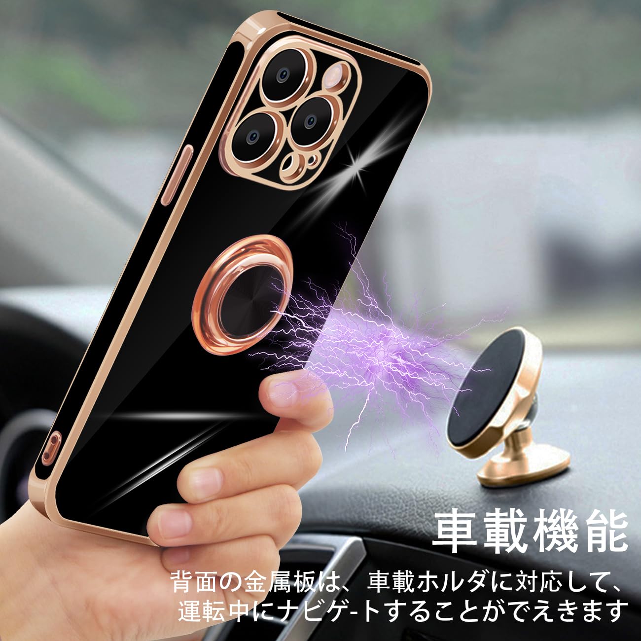 iPhone 12 pro ケース リング付き 車載ホルダー対応 携帯カバー 360°回転 スタンド機能 リング カバー アイフォン 12 pro 耐衝撃 TPU カバー 6.1インチ用(ブラック)