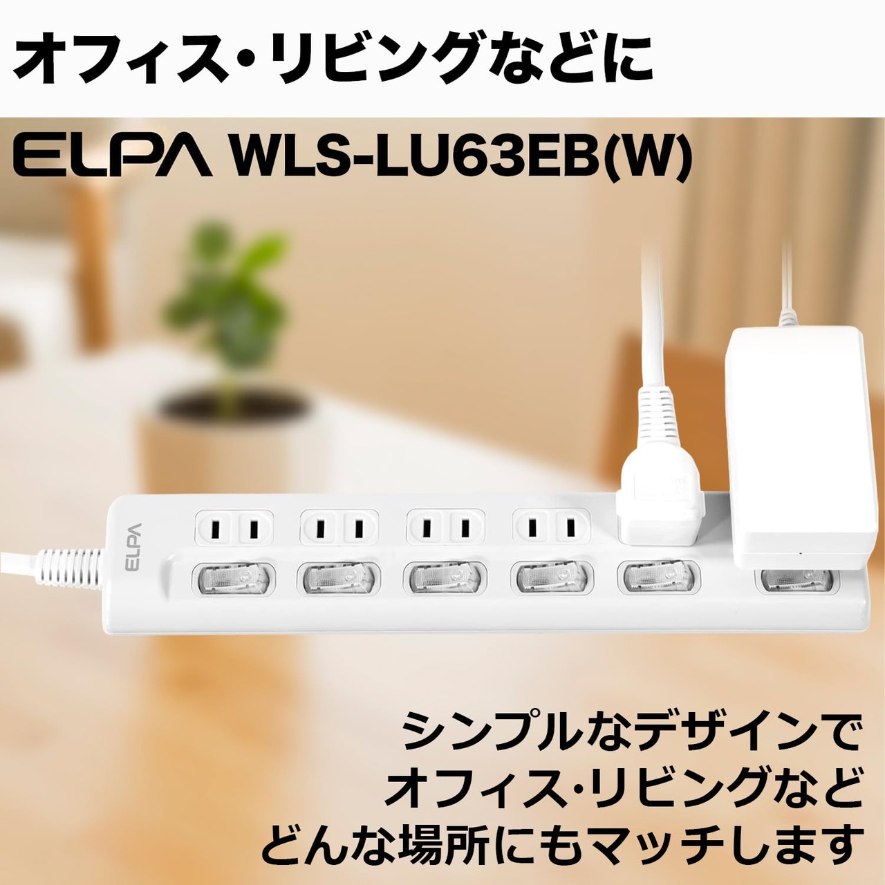エルパ(ELPA) スイッチ付タップ コンセント 延長コード LED 上差し 6個口 3m WLS-LU63EB(W)