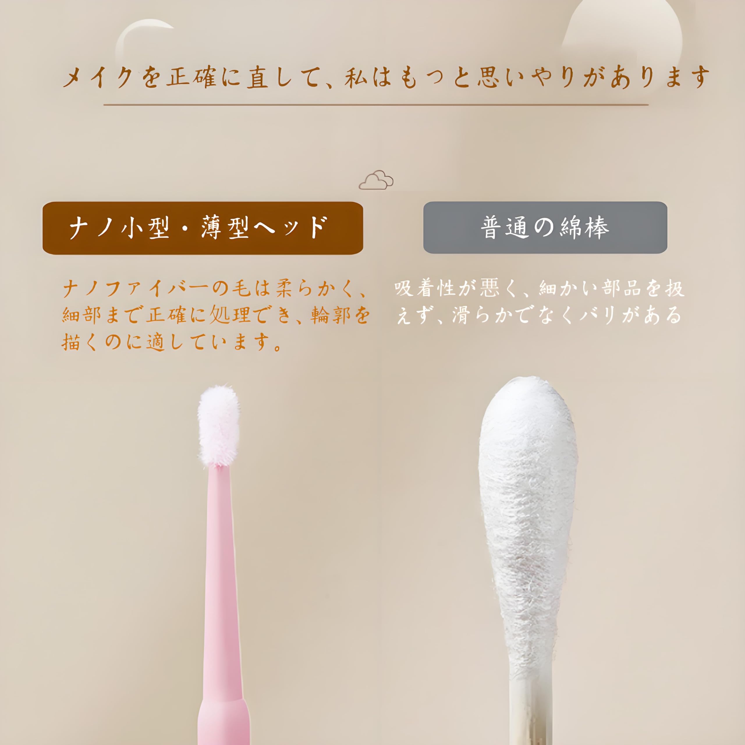 BaraRose マイクロ綿棒 綿棒 極細 マイクロアプリケータ ー 一度 使い捨てメイクブラシ まつげブラシ まつげメイクツール で 200個 (ベージュ)