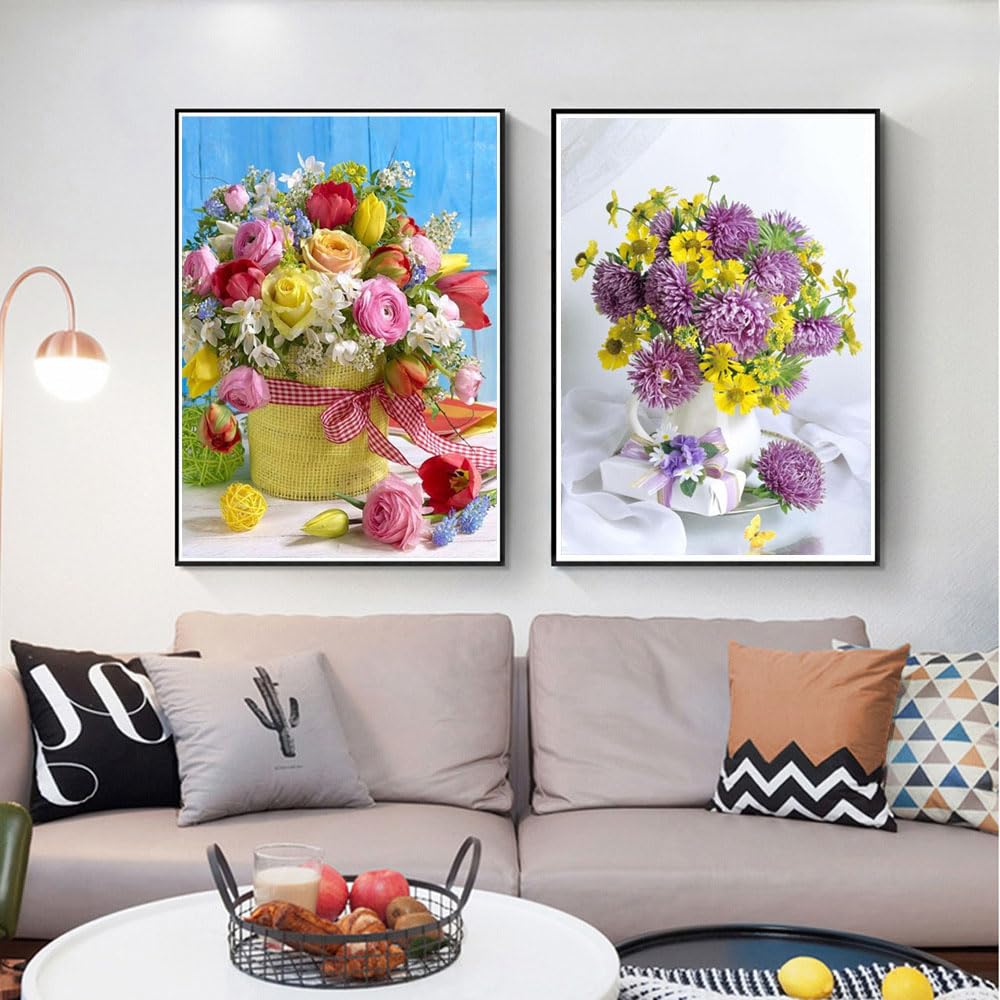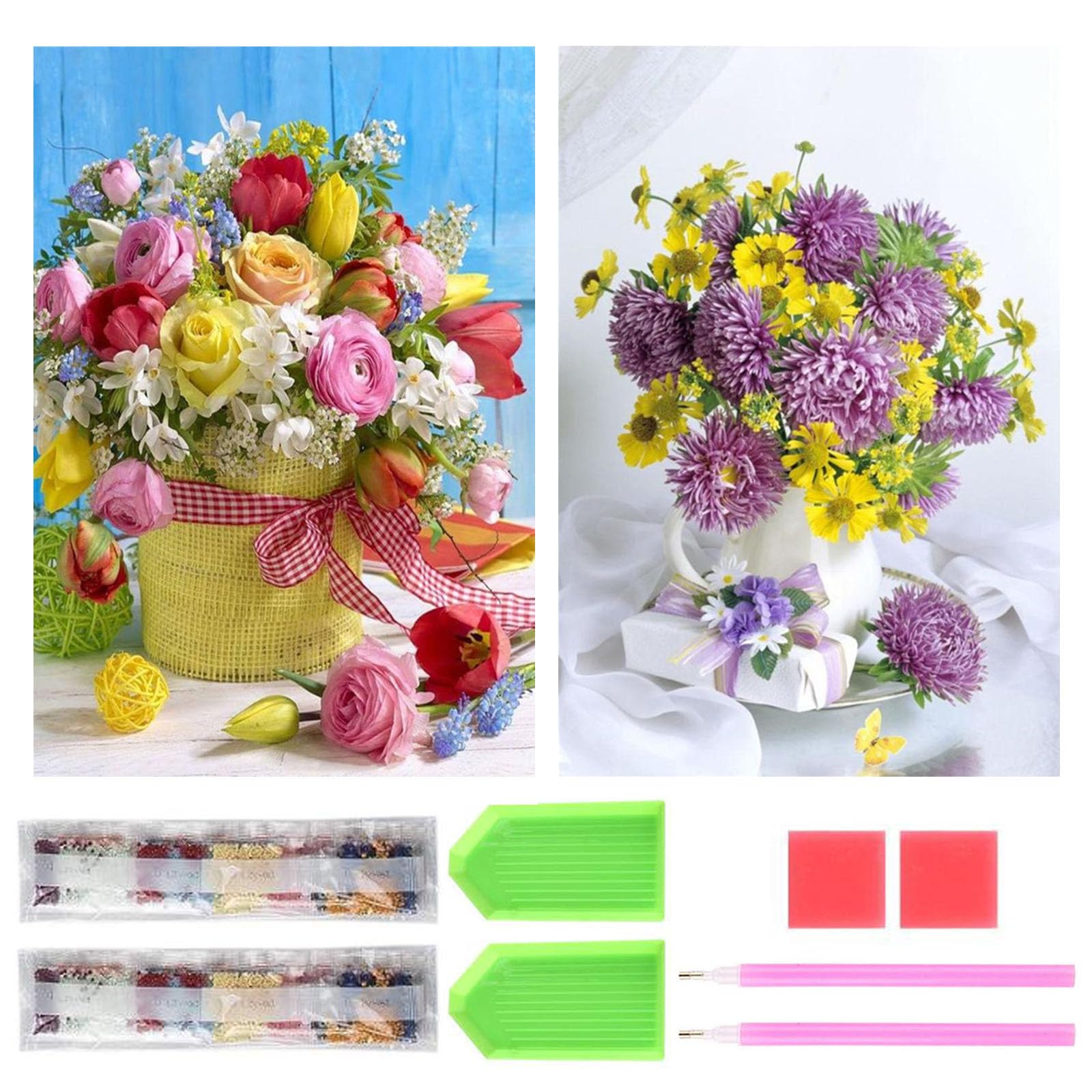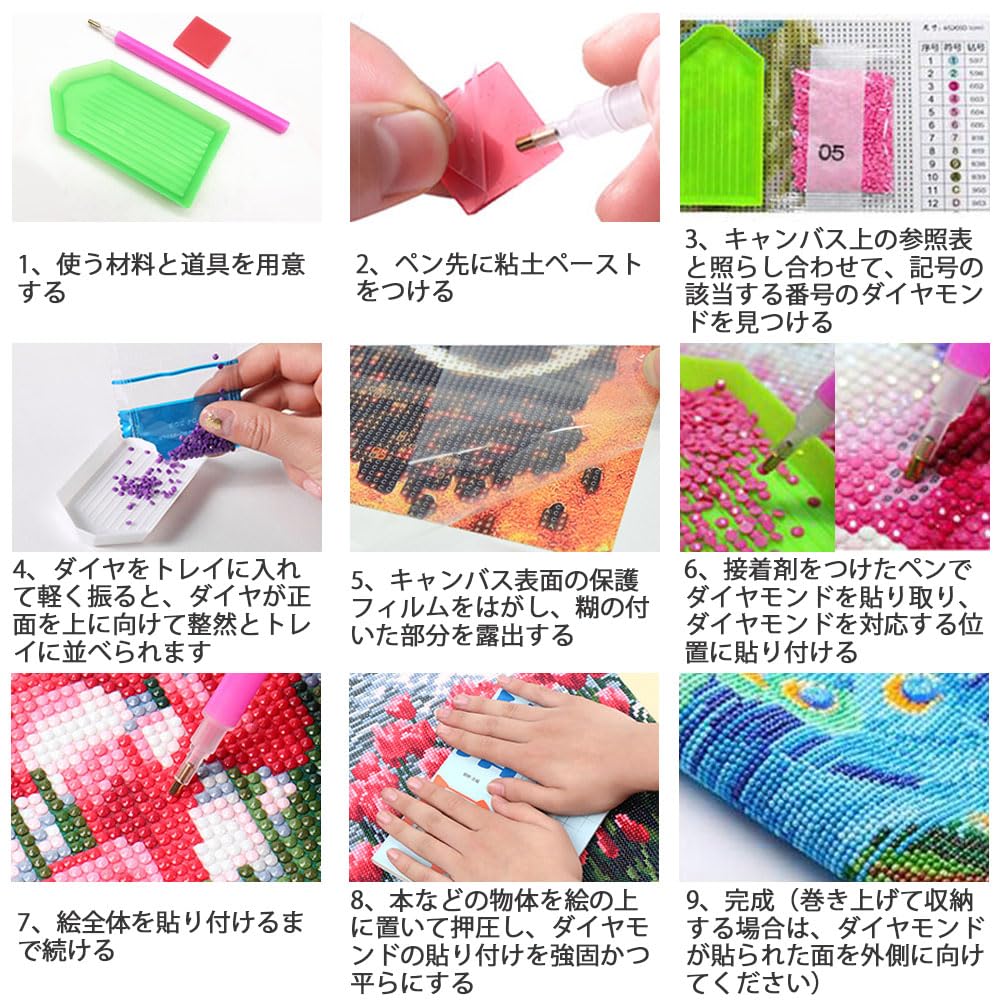 サムコス ダイヤモンドの絵画 ダイヤモンドアート キット 2個セット 暇つぶし おしゃれ かっこいい きれい 全面貼り付け ハンドメイド 初心者 DIY 手芸キット 家の装飾(花6)