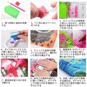 簡単に始めます:ペン先に準備した糊を塗って、キャンバスの上のフィルムをめくって(貼りながら引き裂くことをお勧めします)、キャンバスのそばの参照表に合わせて対応する番号のダイヤモンドを貼って、完成してから本などの物体でしっかりと平らに押さえるだけでいいです。難易度係数が少なく、経験者だけでなくDIY初心者にもぴったりです。
