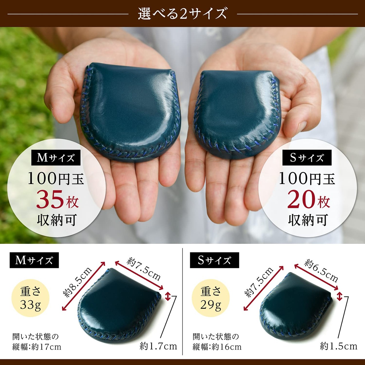 【数量限定】[東京下町工房] 本革コインケース 小銭入れ 完全手作り 手縫い仕上げ コンパクト 使いやすさ (ネイビー Medium)
