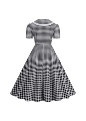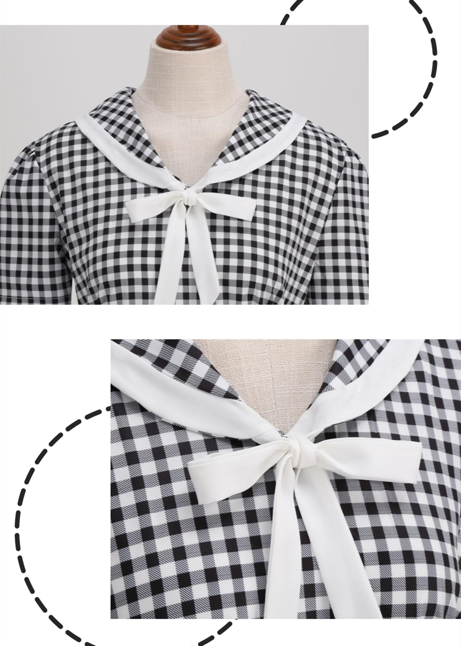 クラシックなチェック柄ワンピースです。襟付き Vネック:よりフォーマルに見え、鎖骨もキレイに見え女性らしい抜け感が出せ、小顔感アップします。胸元のリボンも可愛らしさをさらに引き立てています。Aラインのデザイン:どんな体型でも楽しい着用できます。シルエットで女性らしい曲線美が強調されます。