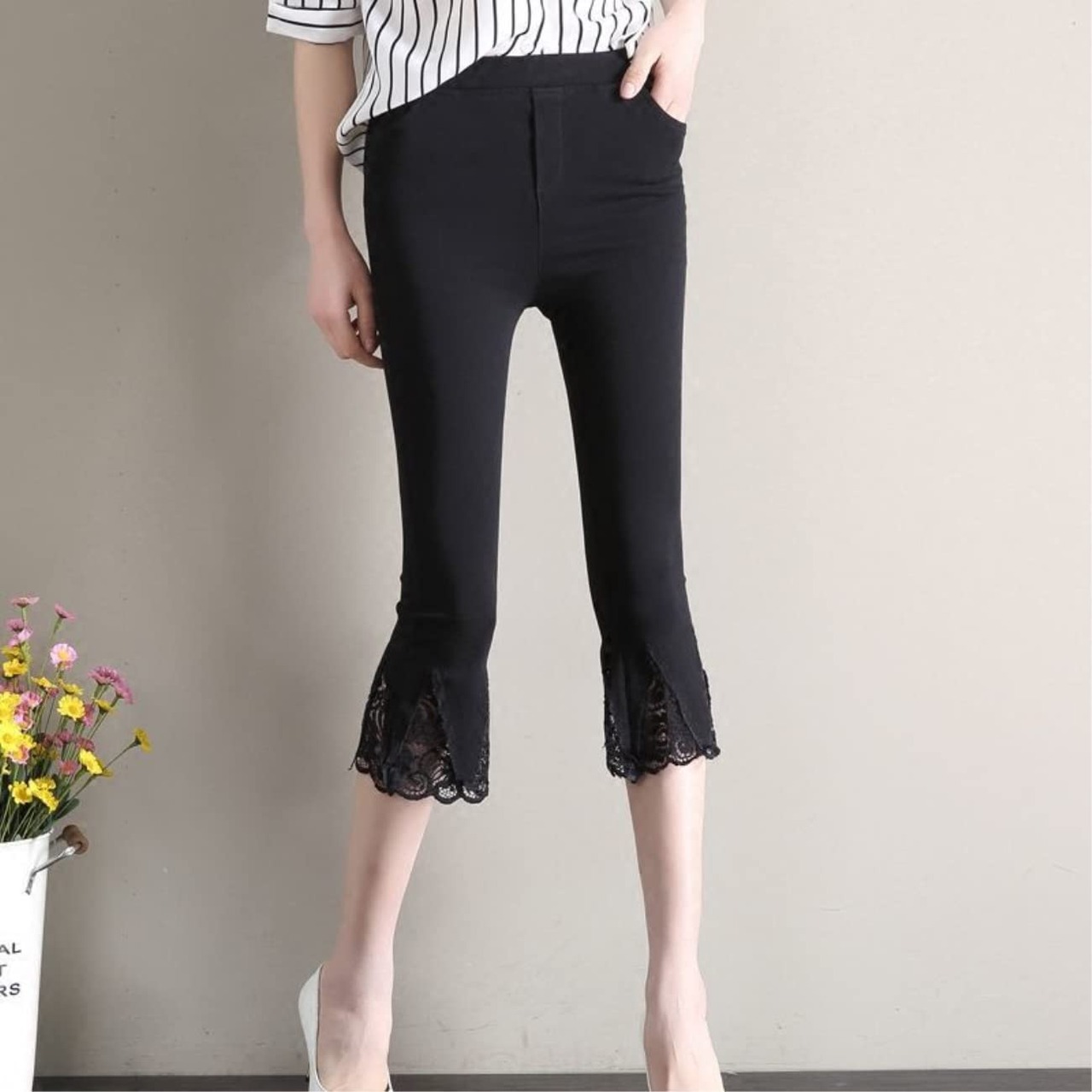 [Nestkanina] レギンス 美脚 裾レース調 七分丈 おしゃれ ストレッチパンツ スリムフィット かわいい スパッツ 美尻 レディース 伸縮 レギパン スキニー レディース 細身 伸縮性 脚長 PNT015