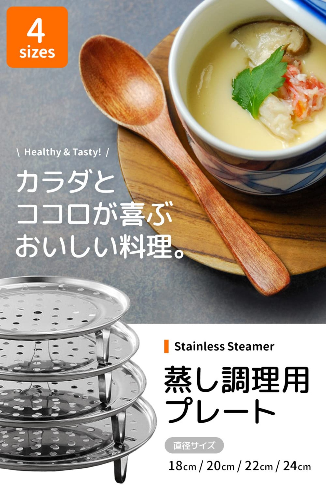 【 様々な料理をお楽しみください! 】 中華料理や魚料理、蒸しパンなどのお菓子作りなど多種多様な料理にトライしてみてはいかがでしょうか【 商品仕様 】 ●「カラー」シルバー ●「サイズバリエーション」18cm、20cm、22cm、24cm※詳細サイズは画像にてご確認ください。●「材質」410ステンレス鋼