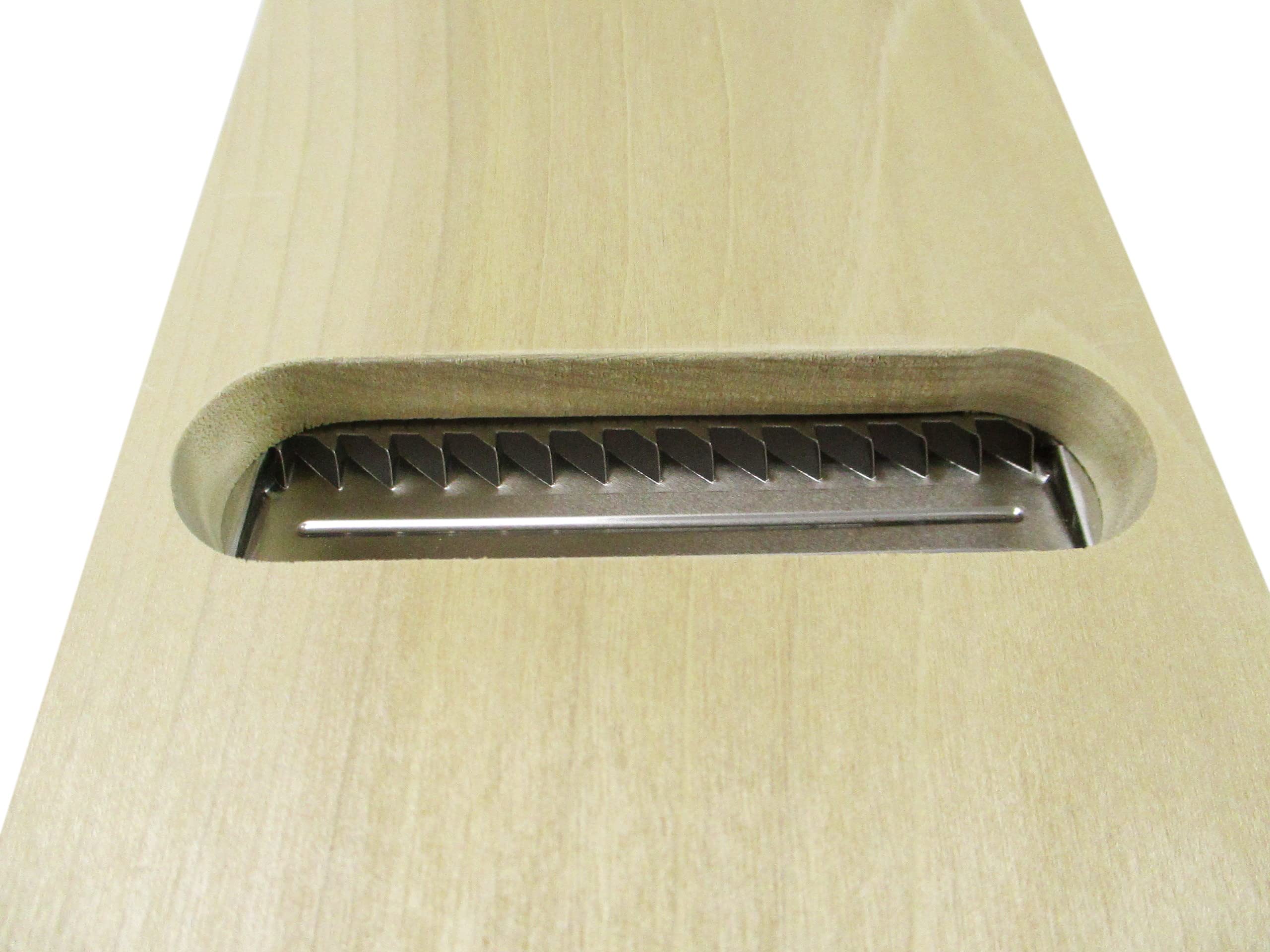 ●刃部は硬い根野菜を楽にカットする為に刃厚0.015mmの材料を使用し、よりスムーズな切れ味をお届けいたします