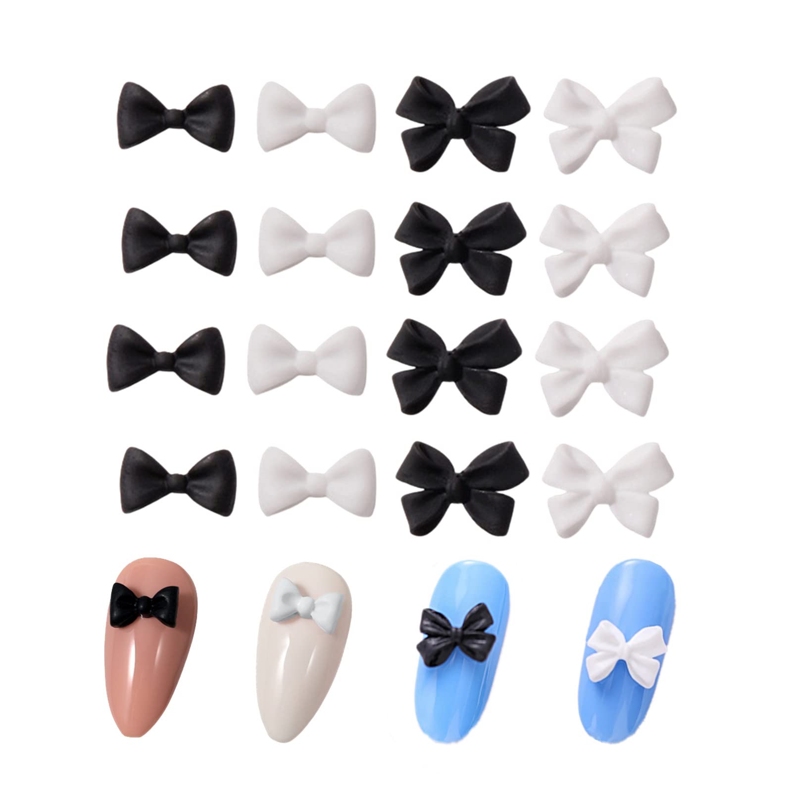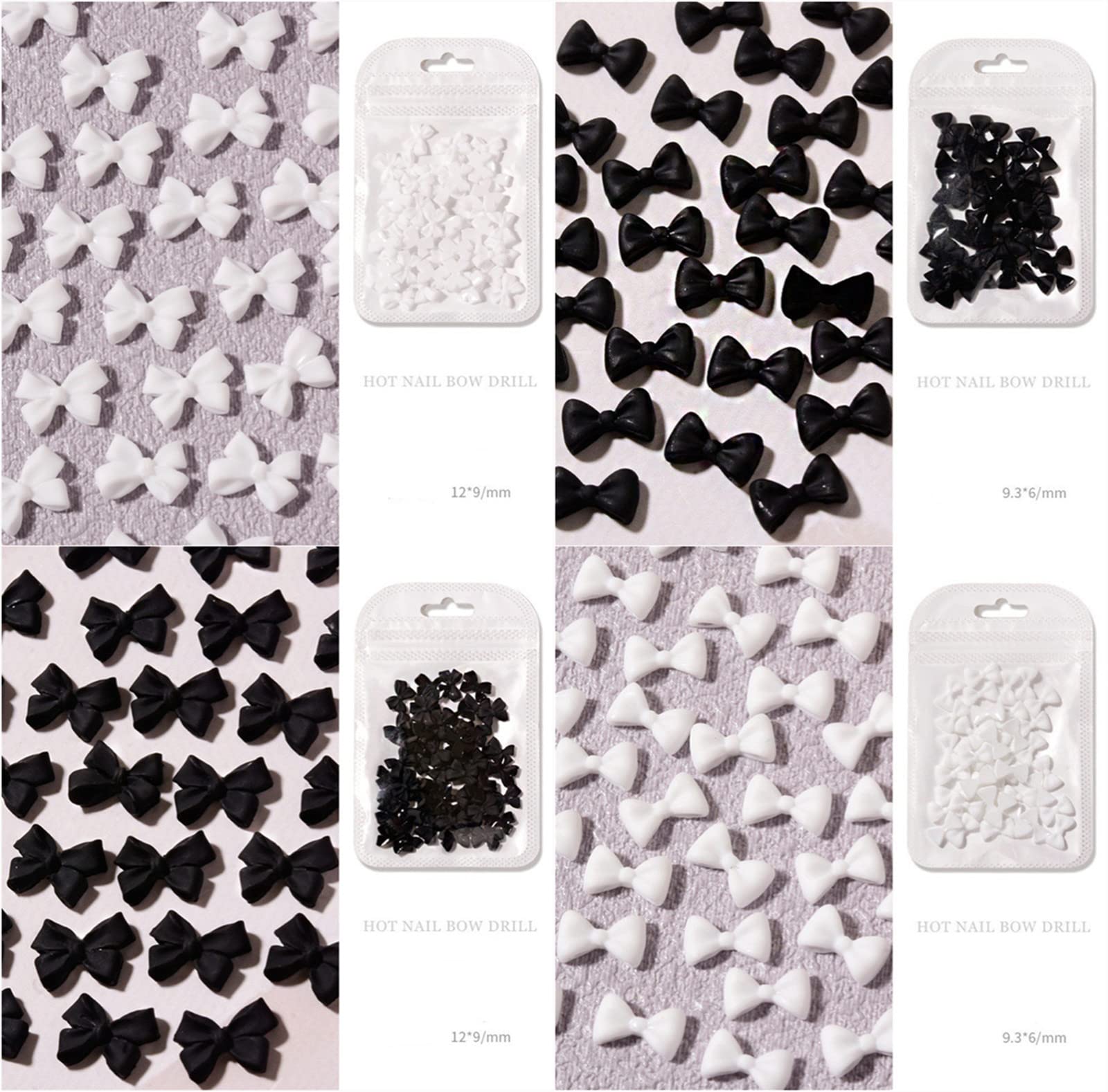 ネイルパーツ リボン 約200個入り 3D 立体 蝶結び パーツ ブラック ホワイト ジュエリーパーツ ネイルアート ジェルネイル レジン デコパーツ ハンドメイド DIY (A)