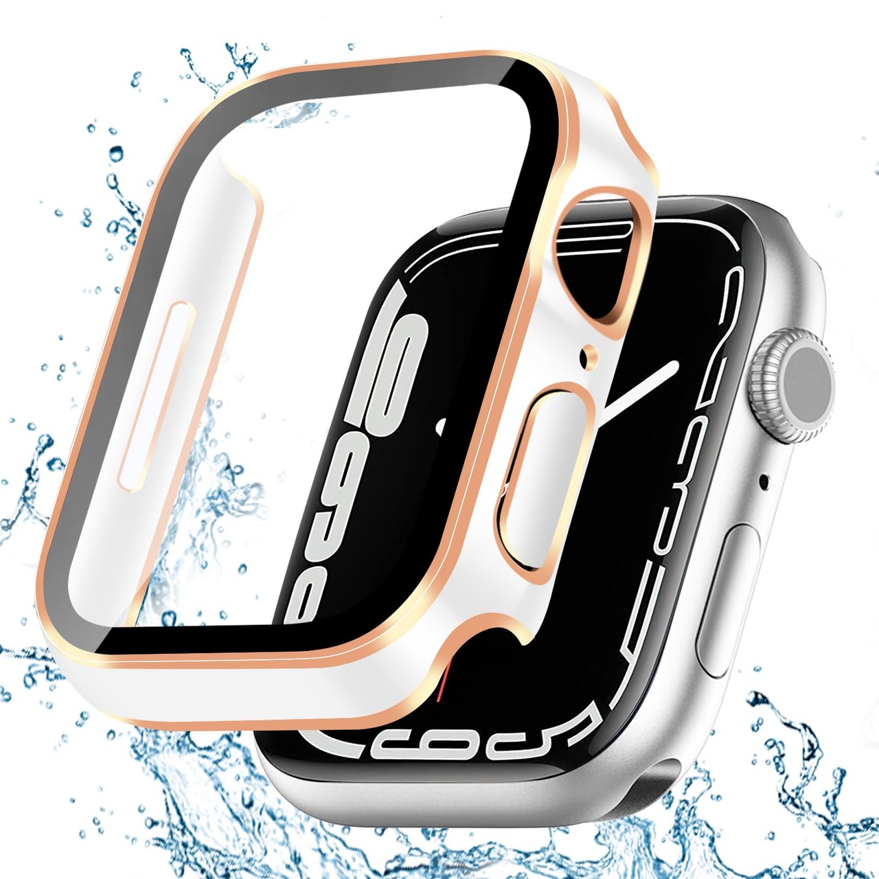 TEMEDO 対応 Apple Watch ケース Series SE3/SE2/SE/6/5/4 アップルウォッチ カバー PC素材 防水 3D直角エッジデザ メッキ加工 Apple Watch カバー 全面保護 二重構造 アップルウォッチ ケース ガラスフィルム 一体型 高耐久 高透過率 装着簡单(40mm光沢のホワイト+ローズゴールド)