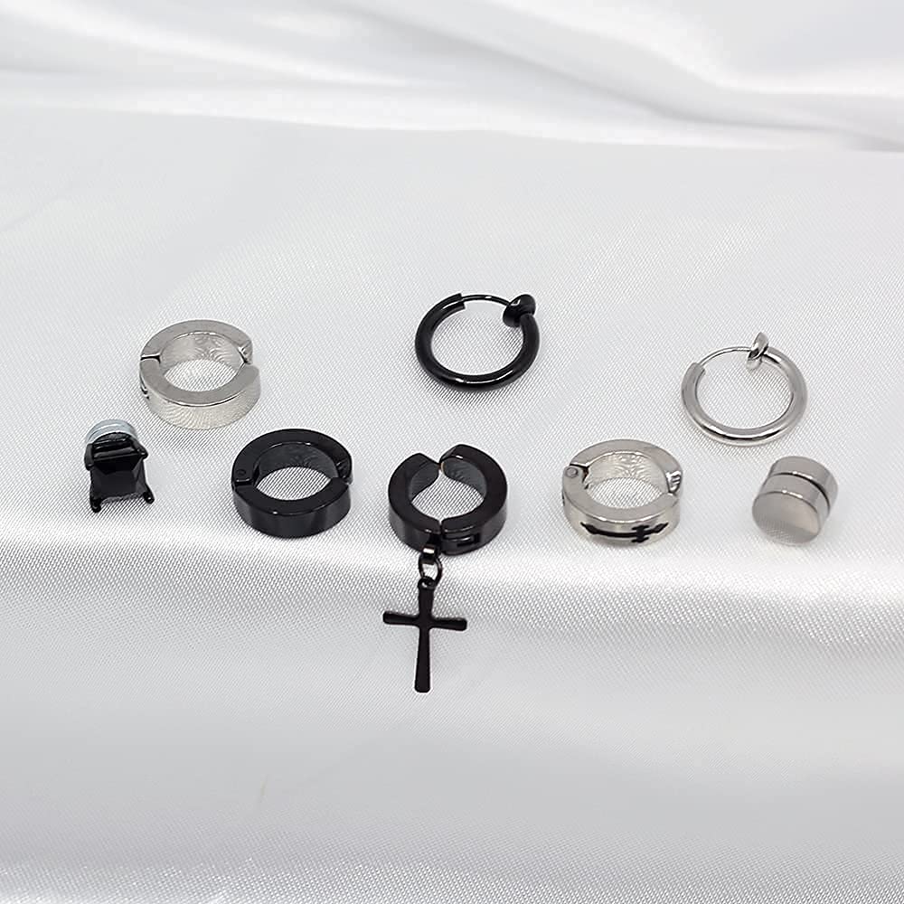 8個セット メンズピアス フェイクピアス 十字架 ノンホール 磁石 マグネットフープピアス フープ セット クロス ユニセックス 人気厳選ピアス イヤリング ステンレス 片耳 アレルギー対応