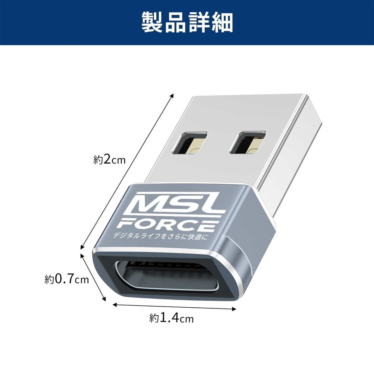 【数量限定】安心の日本企業 MSL FORCE タイプC USB 変換アダプタ 2個入り 超小型 Type-C メス to USB-A オス 変換コネクタ 急速充電 高速データ転送 Windows Mac OS両対応