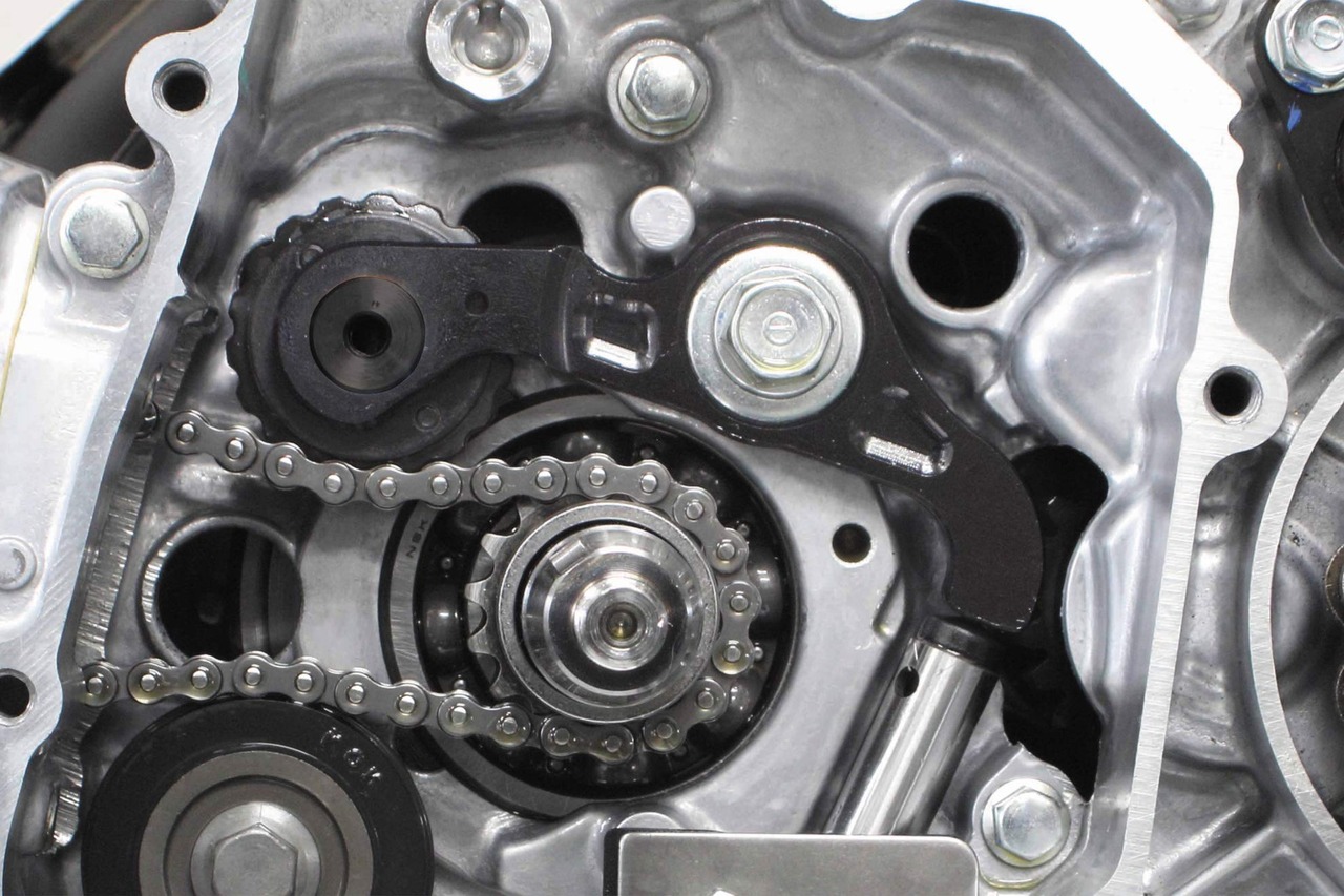カムチェーンへの追従性と適切なテンションを保つことが出来る高強度カムチェーンテンショナー