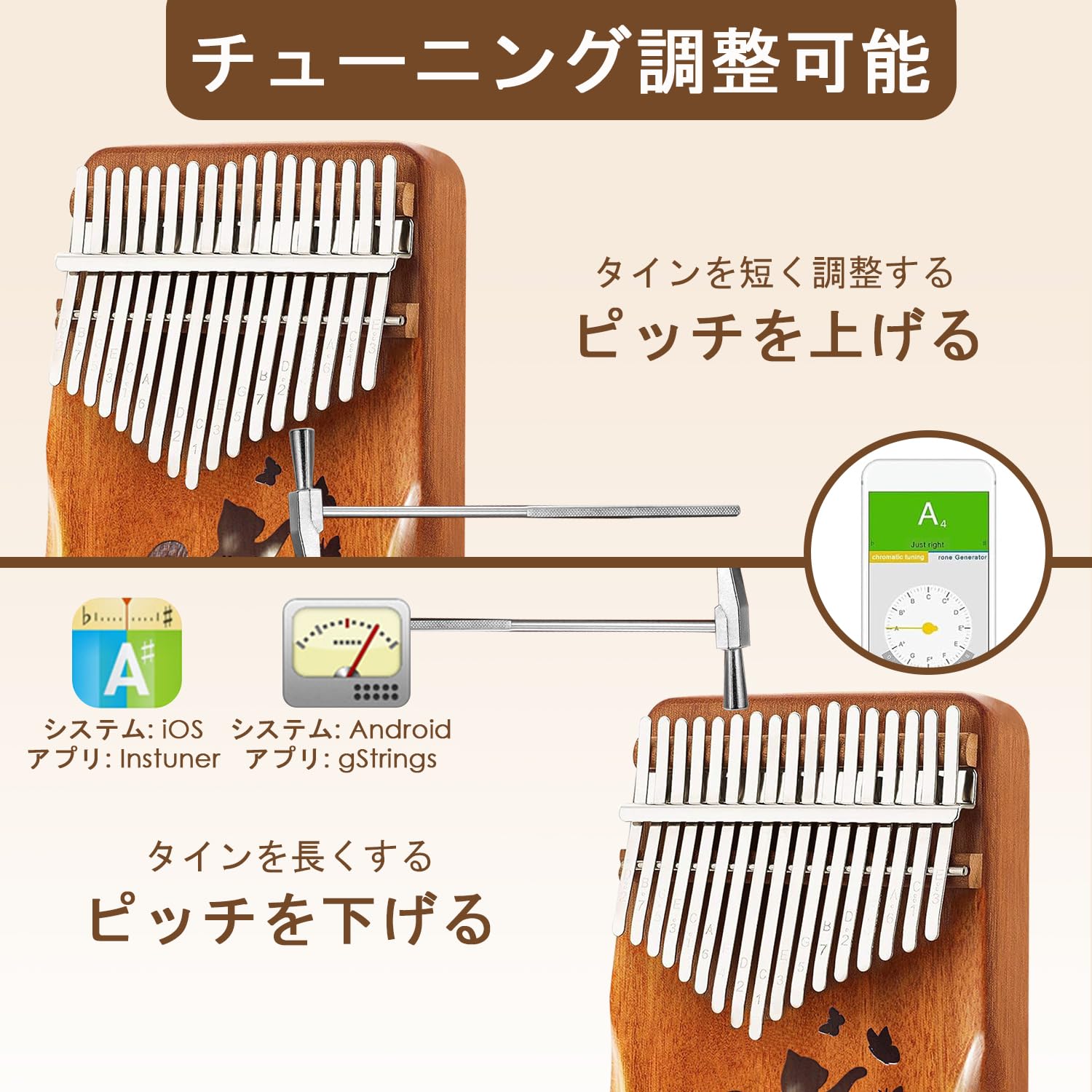 優れた品質の職人技:カリンバは高品質のマホガニーで手作りされており、軽量で耐久性があります。 厳選された鉱石スチールバーは、スムーズな演奏に満ちた、メロディアスで持続性のあるサウンドを提供します。 優れた聴覚、視覚、触覚を自分のものにしましょう。 音板を弾くと、楽しくクリアで豊かな音と音色が感じられます