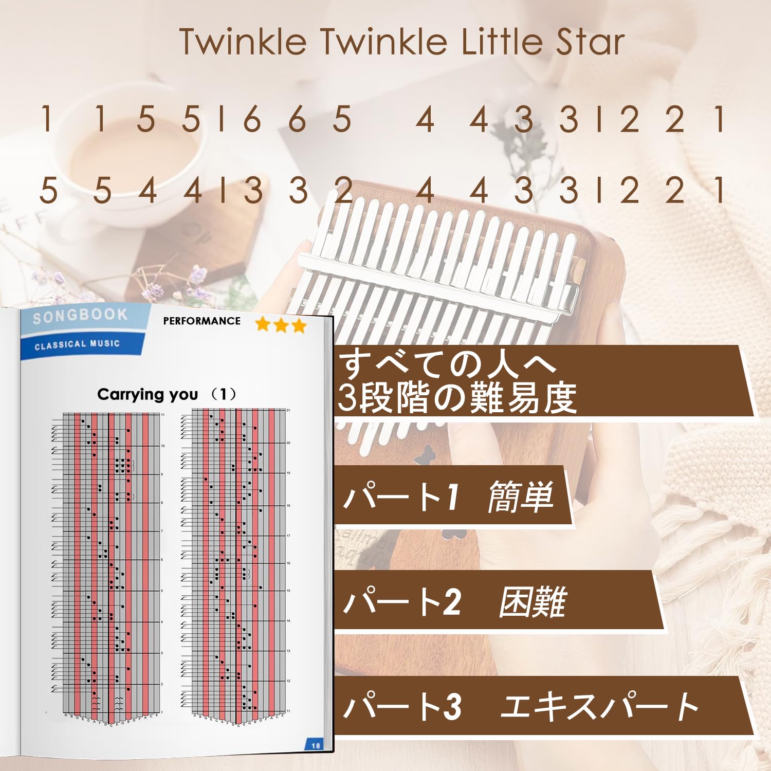 学習が簡単:専門的に作成されたカリンバ学習小冊子を使用すると、カリンバの使用方法と演奏方法が詳しく紹介されており、学習が簡単になります。 カリンバのキーの歯には音符が刻まれています。 初心者でも音の位置や音階を把握できる音符シールも付属しています。 音楽の基礎がなくても、親指を動かすだけで素晴らしい音楽が得られ、一日中楽しめます