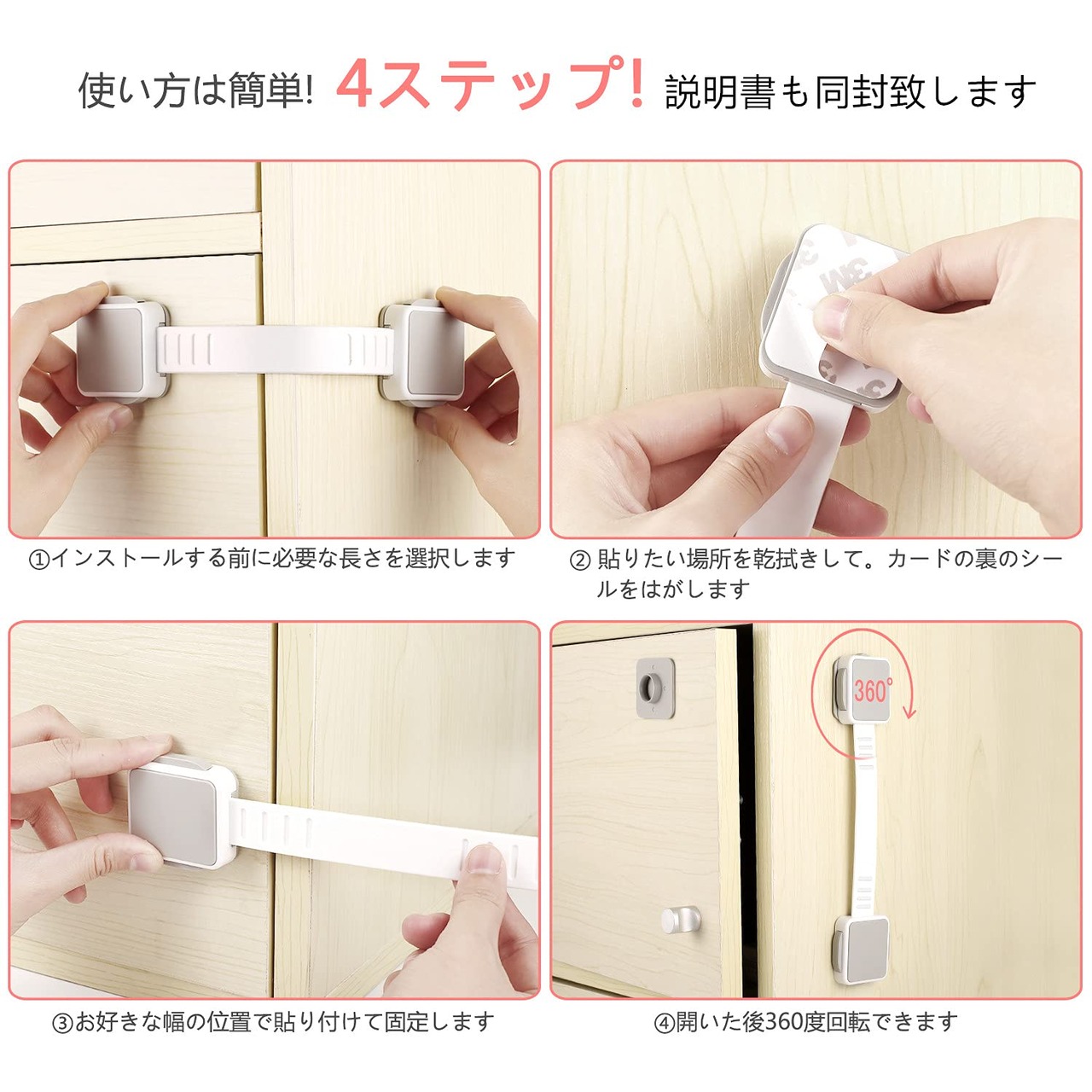 【長さ調整可】当ベビーガードは取付に工具は一切不要です。ストラップは、あらゆるサイズのアプライアンスや家具に合わせて調整できます、インストールする前に必要な長さを選択するだけです。接着力に優れていますが、きれいにはがせます、大切な家具を傷めません。