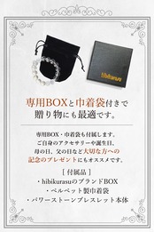 外箱・巾着袋も付属しますので、ご自身のアクセサリーや大切な方へのプレゼントにもオススメです。hibikurasuでは日本基準の高い検品・梱包・販売・発送にて皆様のお手元にお届けいたします。