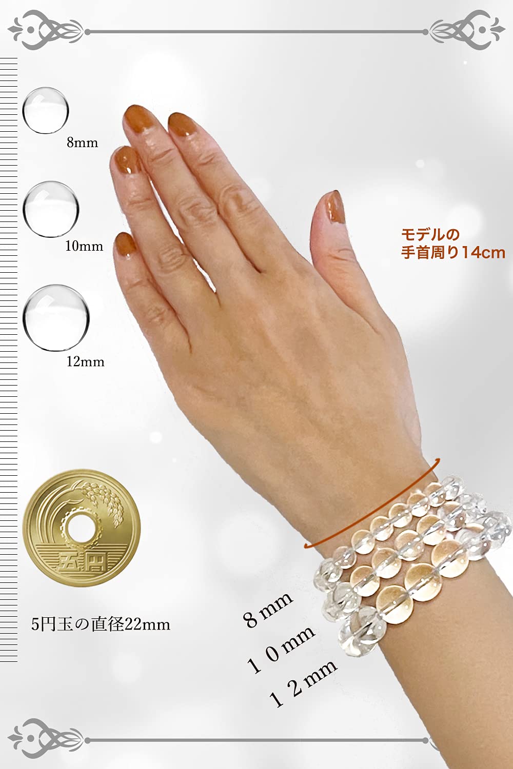 パワーストーンの代表格である水晶はクリアカラーでファッションに取り入れやすいため、非常に高い人気があります。 伸縮性のあるコードを使っていますのでメンズ・レディース問わずお好みの石のサイズをお選びいただけます。(8mm、10mm、12mm )