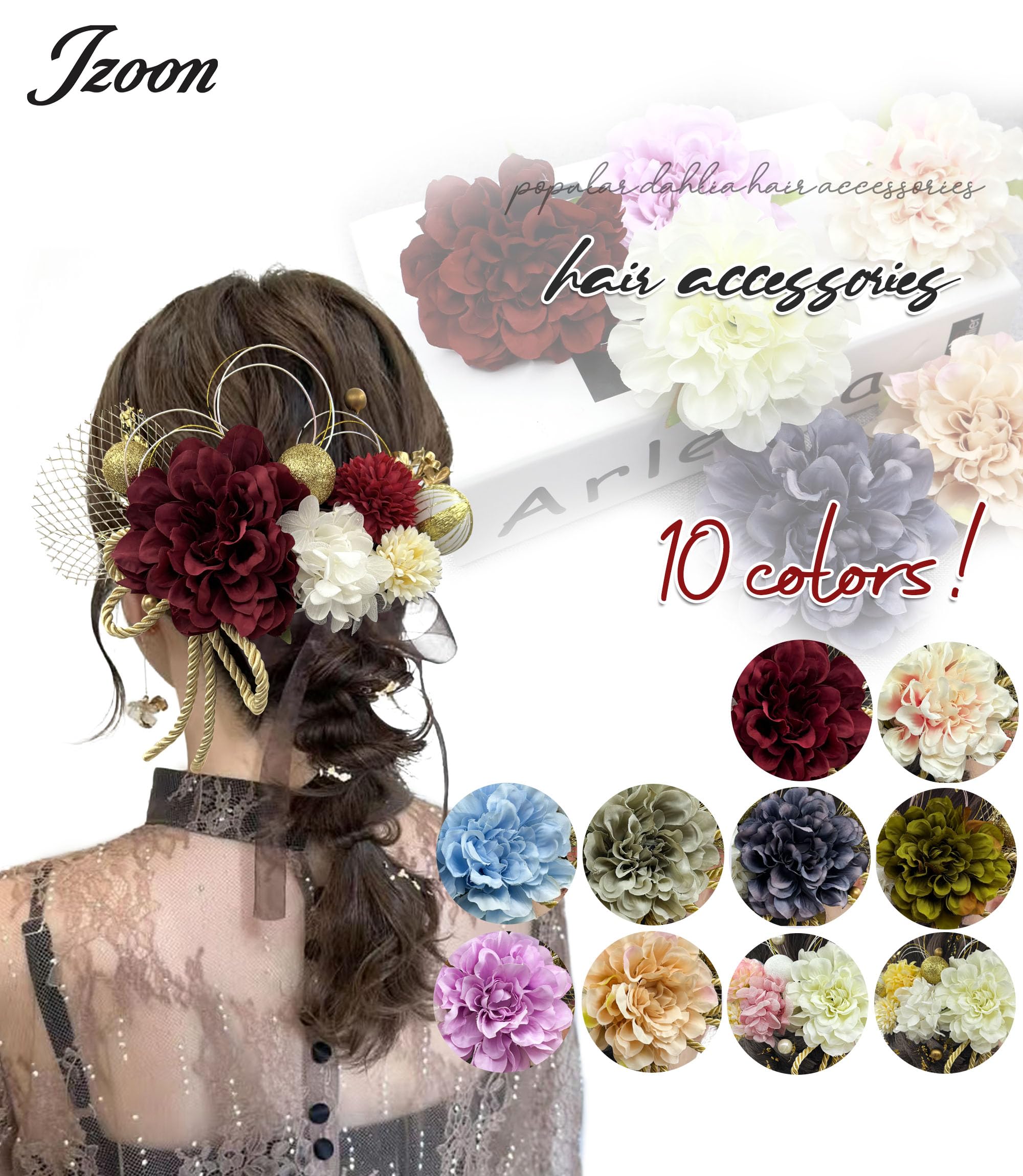 [JZOON] 成人式 髪飾り【10色展開】 ドライフラワー ダリア あじさい かすみ草 造花飾り ヘアアクセサリー 和玉 赤 ゴールド 水引 ヘッドパーツ 振袖 着物 卒業式 七五三 浴衣 袴 結婚式用 手作り 専用ケース付き Y3330