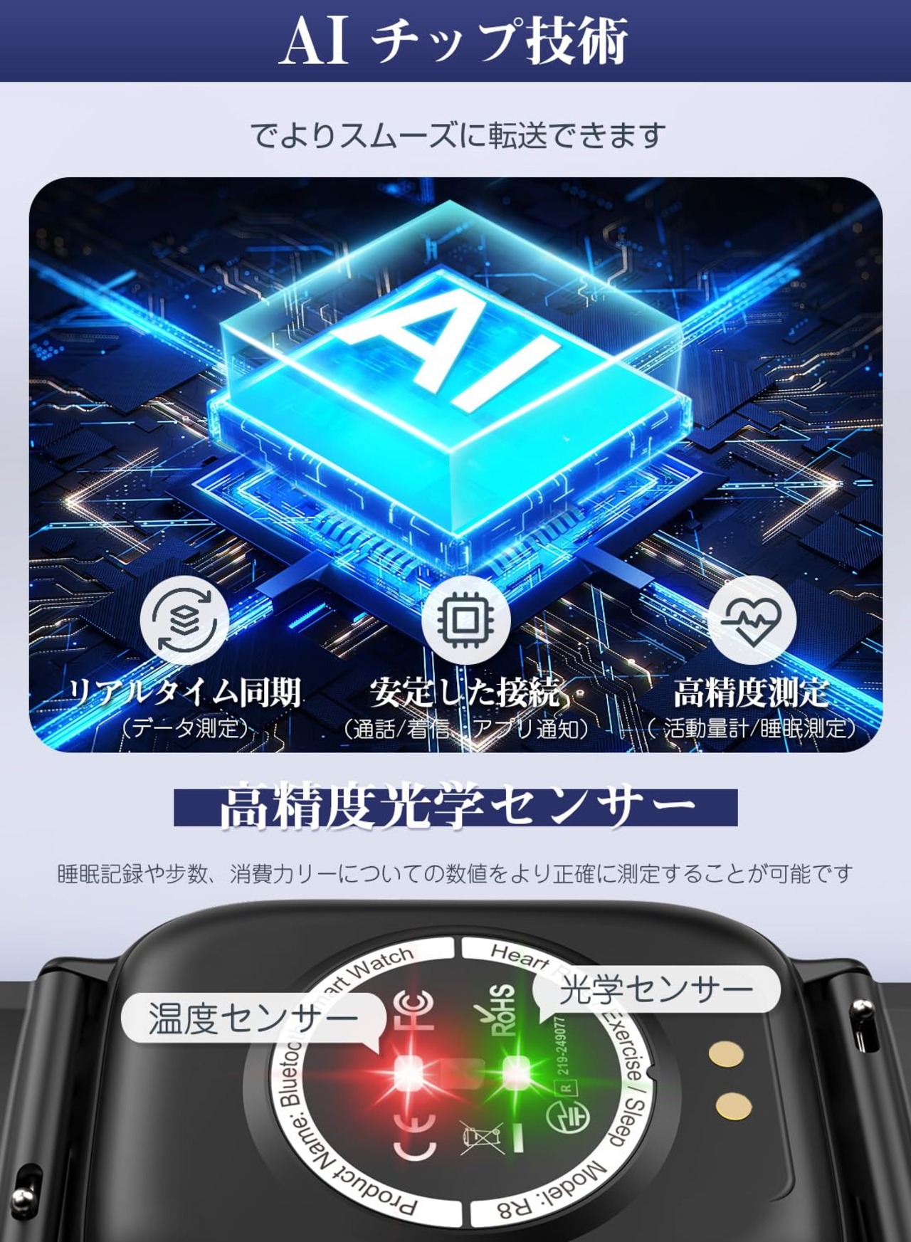 【2025年パフォーマンス進化モデル・精緻なデータ活用】最先端の2025年進化型パフォーマンスモデル「R8」は、革新的テクノロジーを搭載した多機能スマートデバイスとして、使用者の日々のデータを丁寧に記録・解析し、ライフスタイル全体の充実に役立つ具体的な提案を実現しています。生活の質を意識する方や、より豊かな毎日を目指す方に理想的な選択肢となる本モデルは、歩数など多様なデータを直感的に確認でき、さまざまな角度から日常を整えられる点が大きな魅力です。さらに、習慣的なアクティビティ記録を促す機能も備わっており、無理なく自然に活用できる設計となっています。ボーダレスなデザイン思想をもとに、精緻に仕上げた曲面ガラスは、まるで繊細な翡翠のような輝きを放ち、軽やかでありながら高い表示性能を発揮。優れた品質と多機能性を併せ持つ本モデルは、フォーマルな場面はもちろん、カジュアルな装いにも自然に馴染む洗練された雰囲気を備え、日常のあらゆる場面でスタイリッシュな印象を与えます。