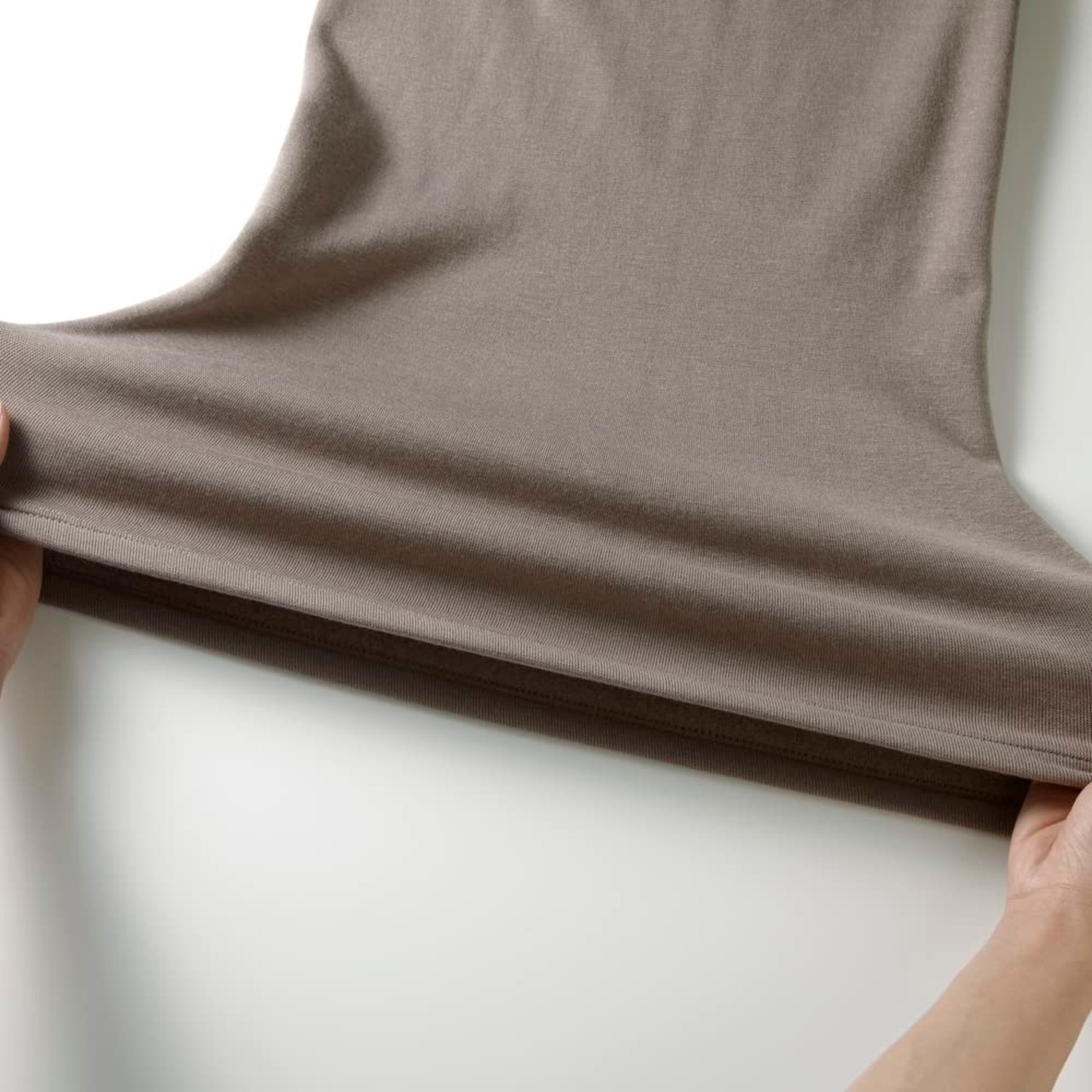 驚きのストレッチ首元も暖かい狭めの首開き設定。