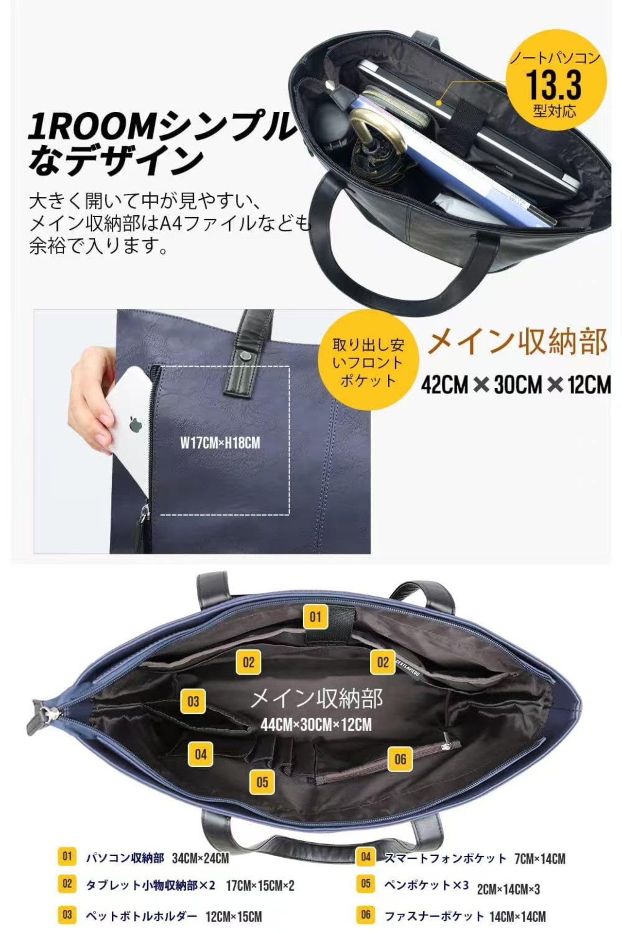 [Cestlaviegu] トートバッグ ビジネスバッグ メンズ レディース 大容量 防水 自立 大きめ PUレザー A4 13.3型PC収納 ビジネストートバッグ メンズ ファスナー付き 就活 通勤 通学 出張 旅行