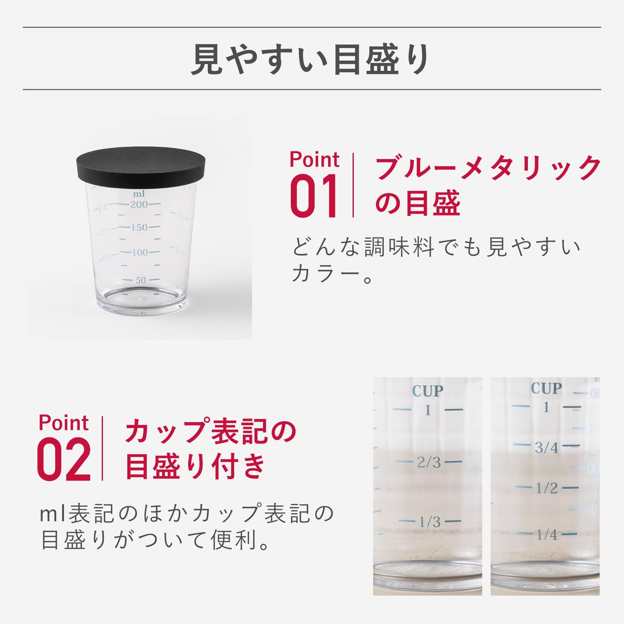 透明色・濃い色など全調味料が見やすい目盛りの計量カップ