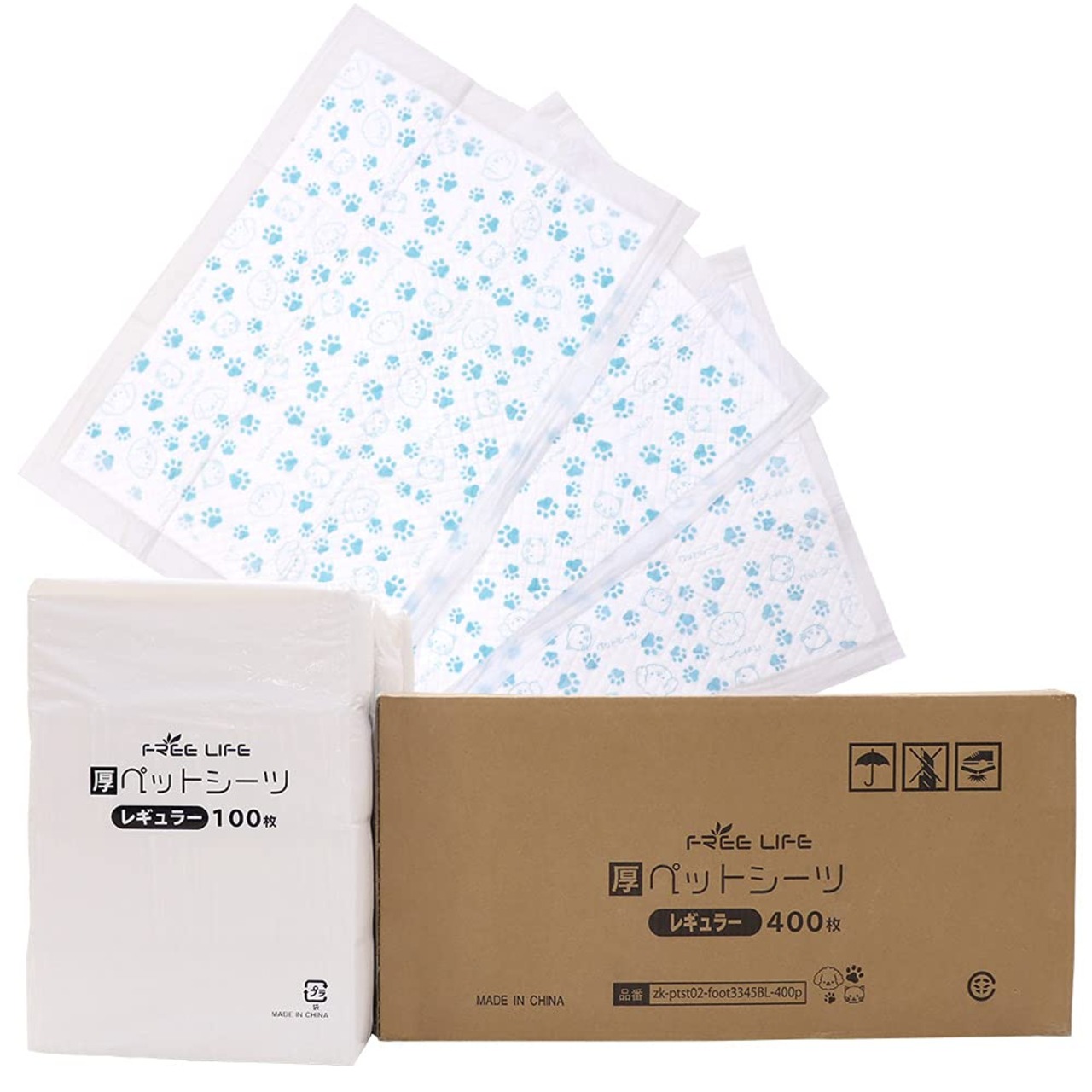 フリーリー ペットシーツ 超厚型 超吸収・防漏ベースフィルム|犬のトイレトレーニングに,ペット用トイレです レギュラー 400枚 柄付き