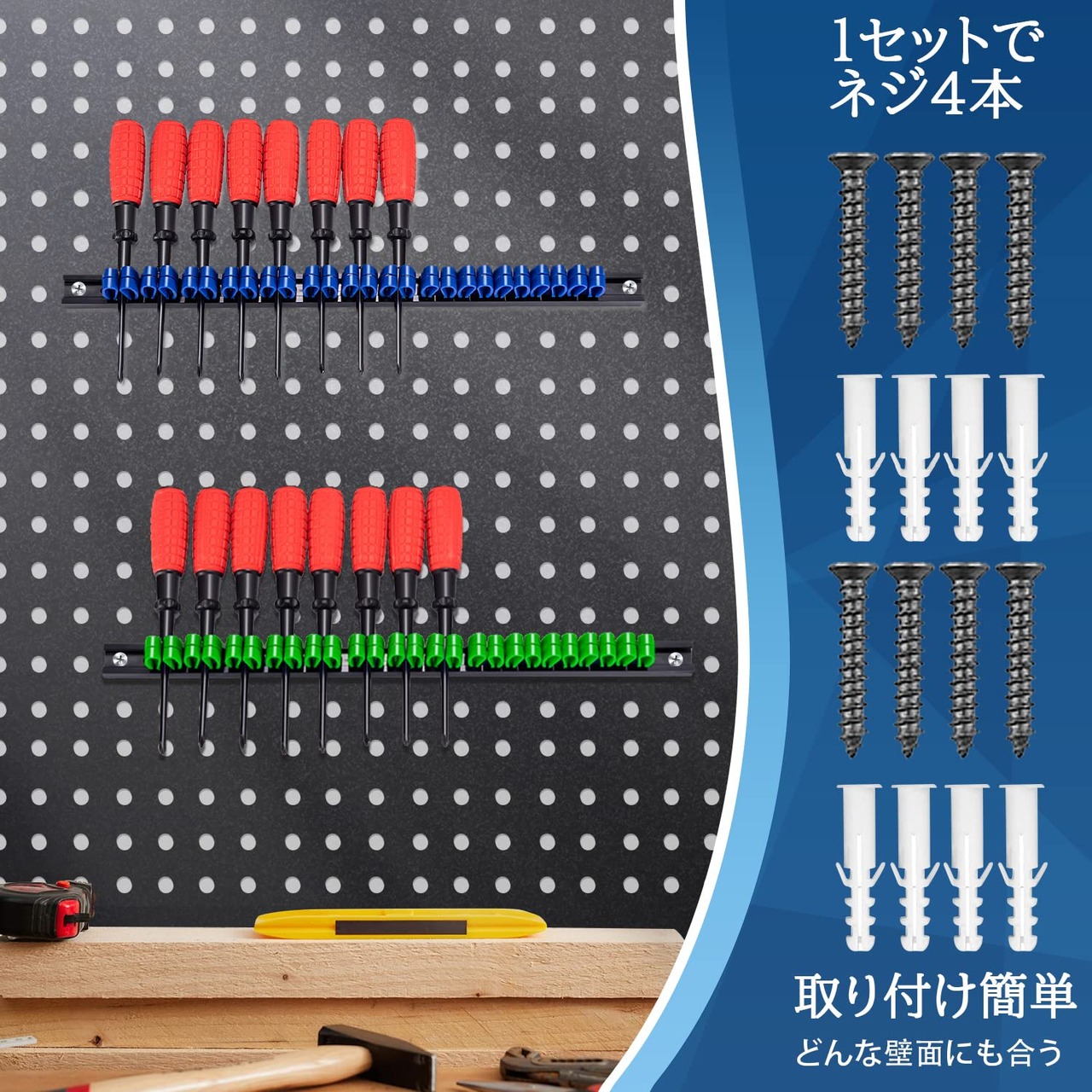 【取り付け簡単】この工具さしはどんな壁面にも適します、各レールにはネジと膨張チューブが付属します。設置方法が簡単で、壁や作業台に簡単にネジ止めでき、落下することなくできるだけ多くの工具を吊るすことができます。