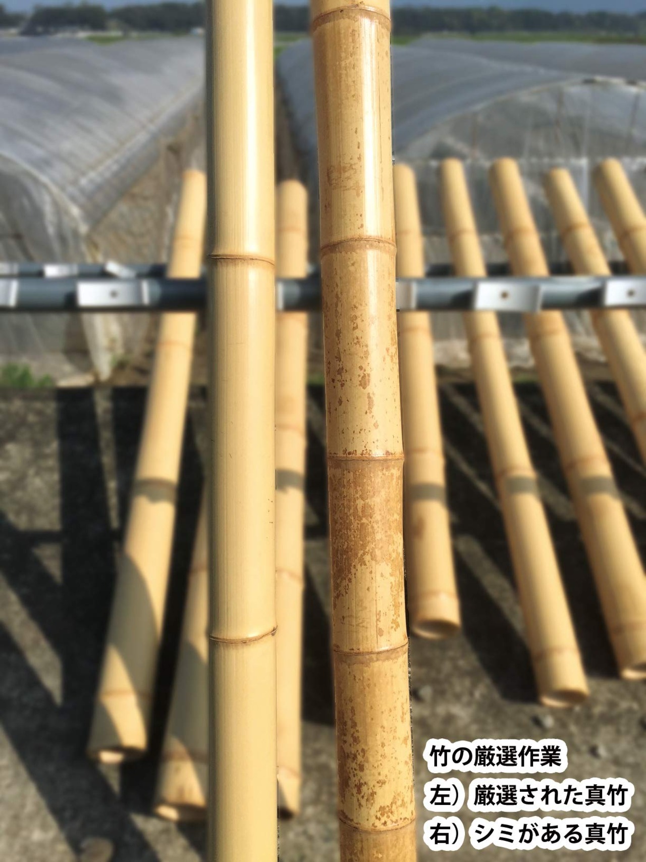 ※「晒し(さらし)」とは、青みがある竹をあえて太陽にさらすことにより青みを抜き黄色に近い色になった色のこと