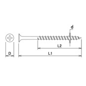 ネジ山の間隔が長く(粗目)ネジの溝が深い、電動工具を使って作業するもっとも一般的な木工用ビスです。