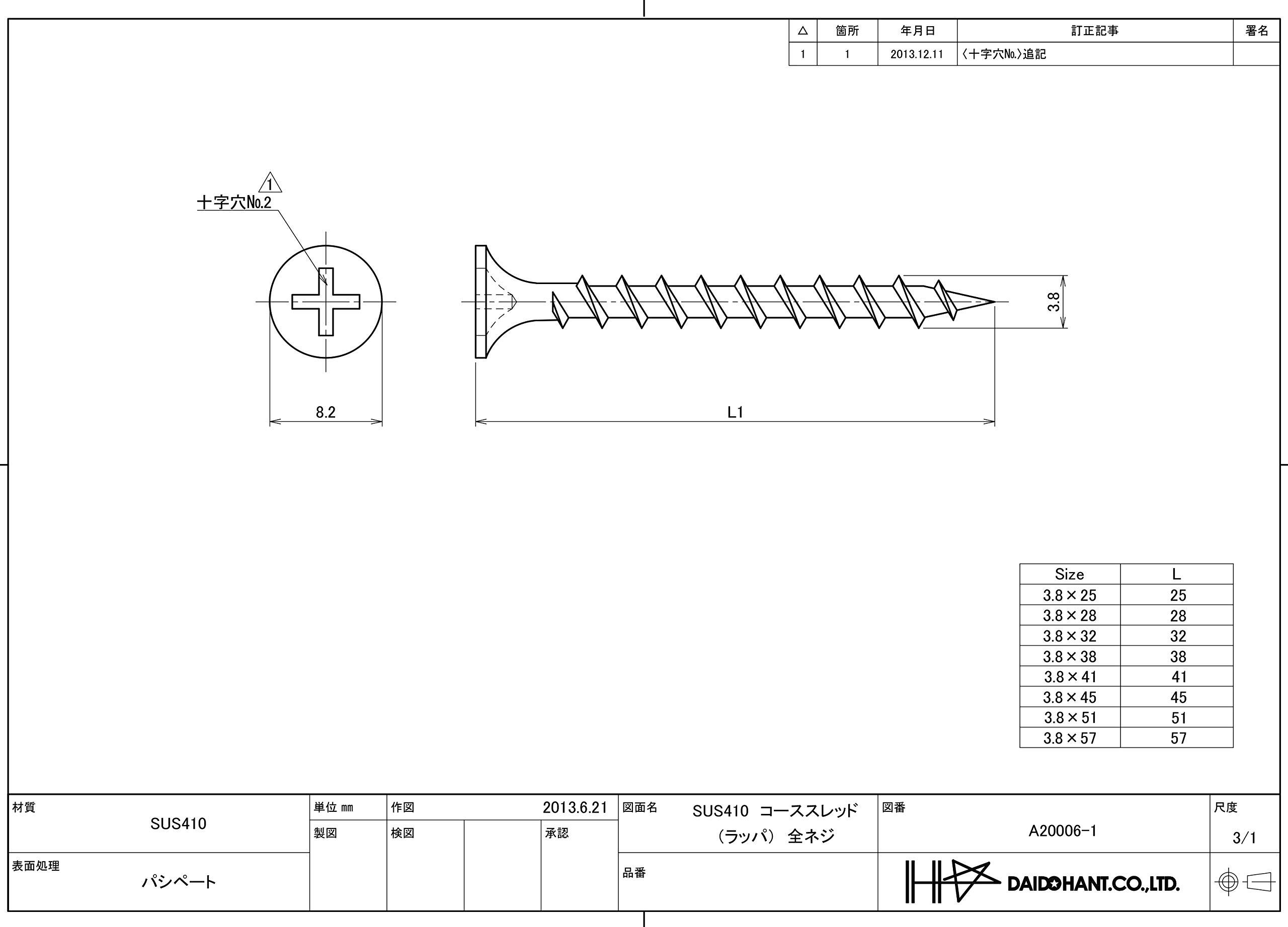 【在庫処分】ダイドーハント (DAIDOHANT) ステンレス コーススレッド (ラッパ / 全ネジ ) [ SUS410 ] (呼び径d) 3.8 x (長さL1) 45mm (120本入) 10176961