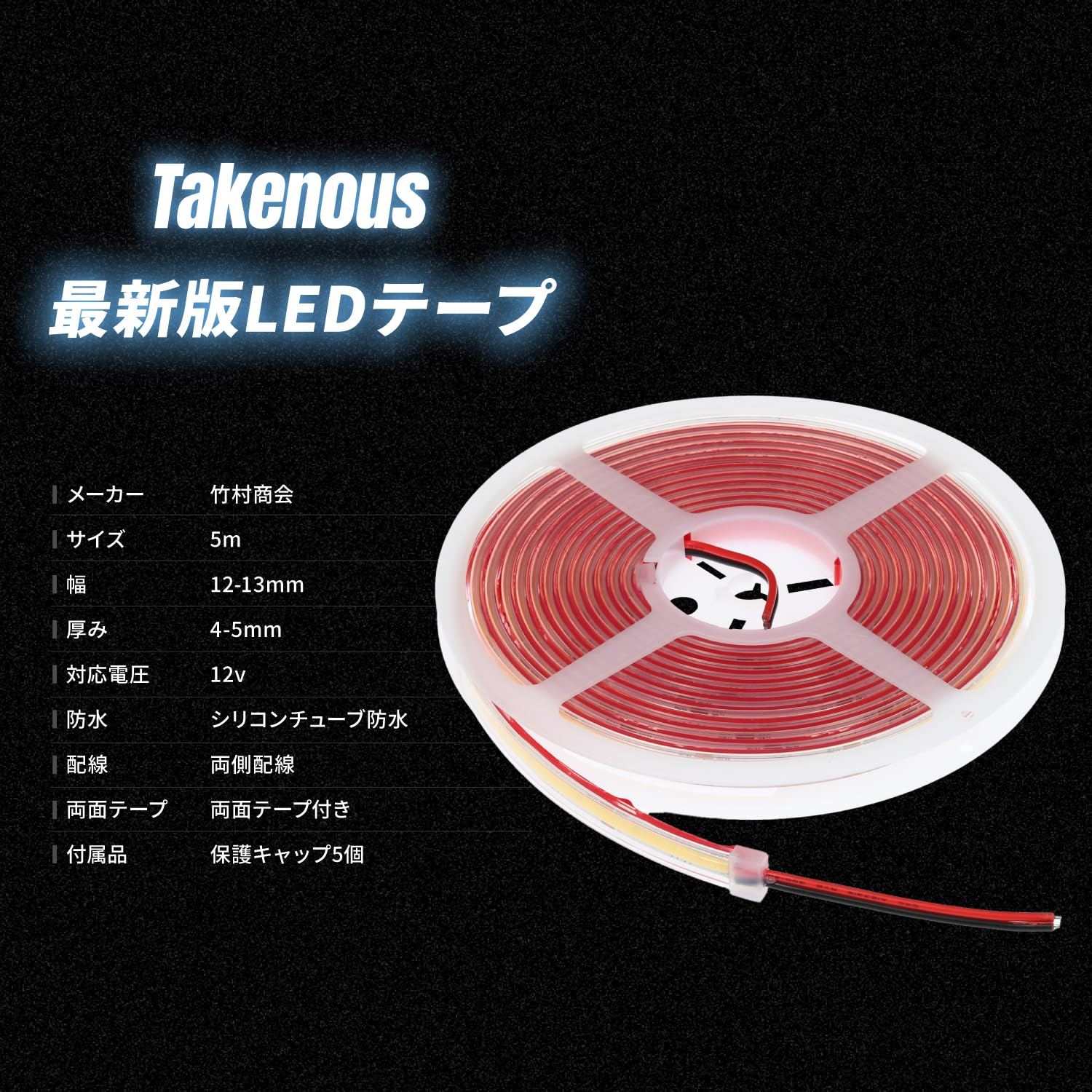 Takenous トラック野郎御用達 竹村商会 ledテープライト ledライトテープ 5m 防水 12v ledテープ 12v cob cobテープ 車 カーパーツ 単車 バイク 選挙カー (イエロー)