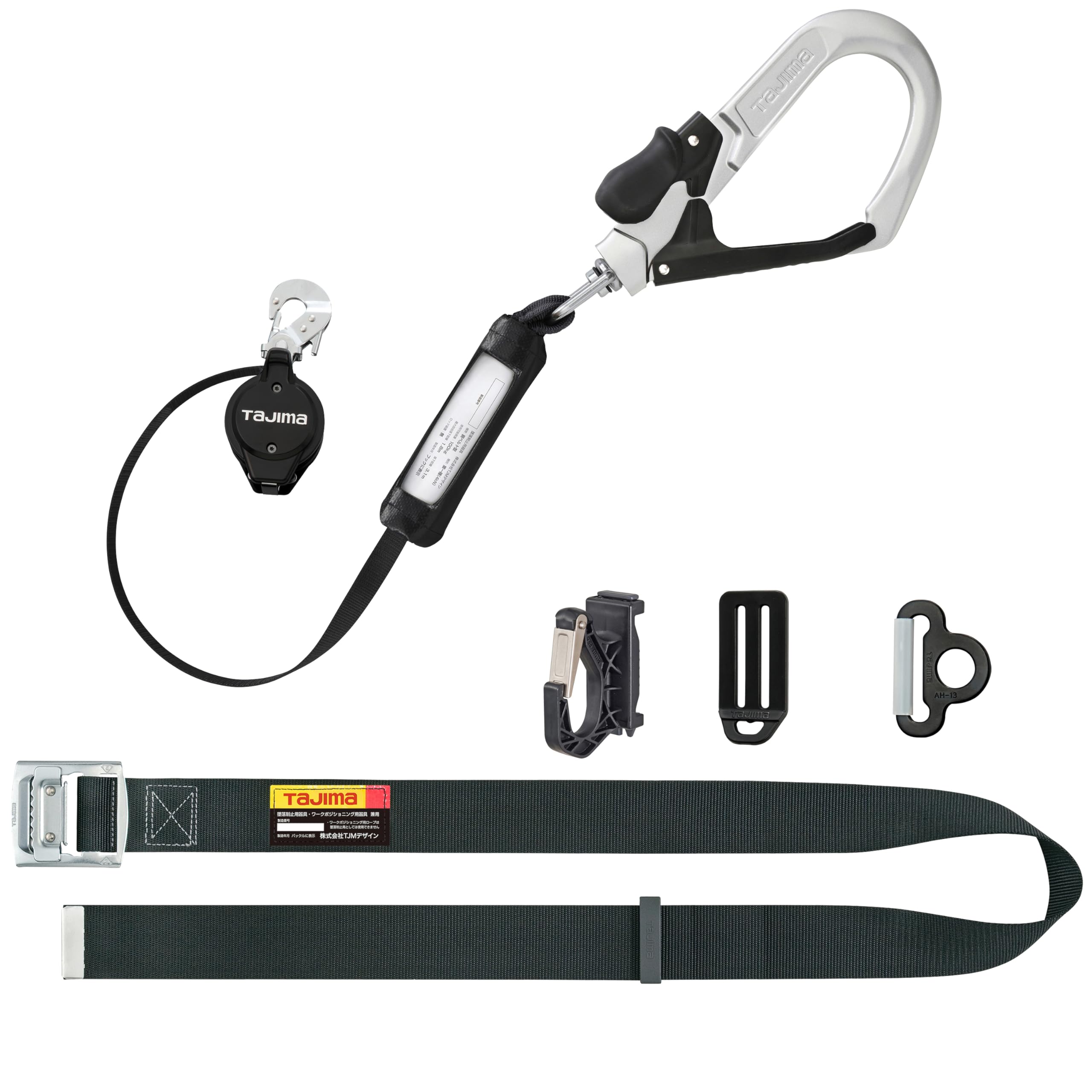 ・胴ベルト型ロック付巻取式ランヤード、胴ベルトLサイズ(145cm)の2点セット