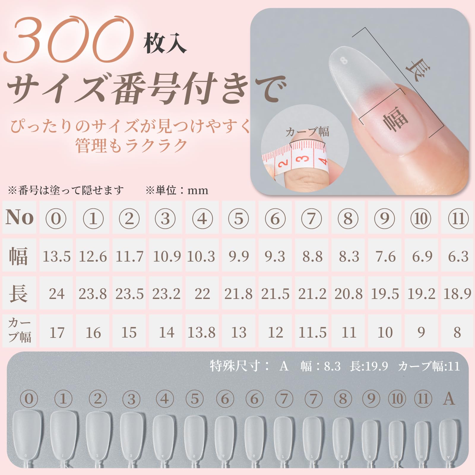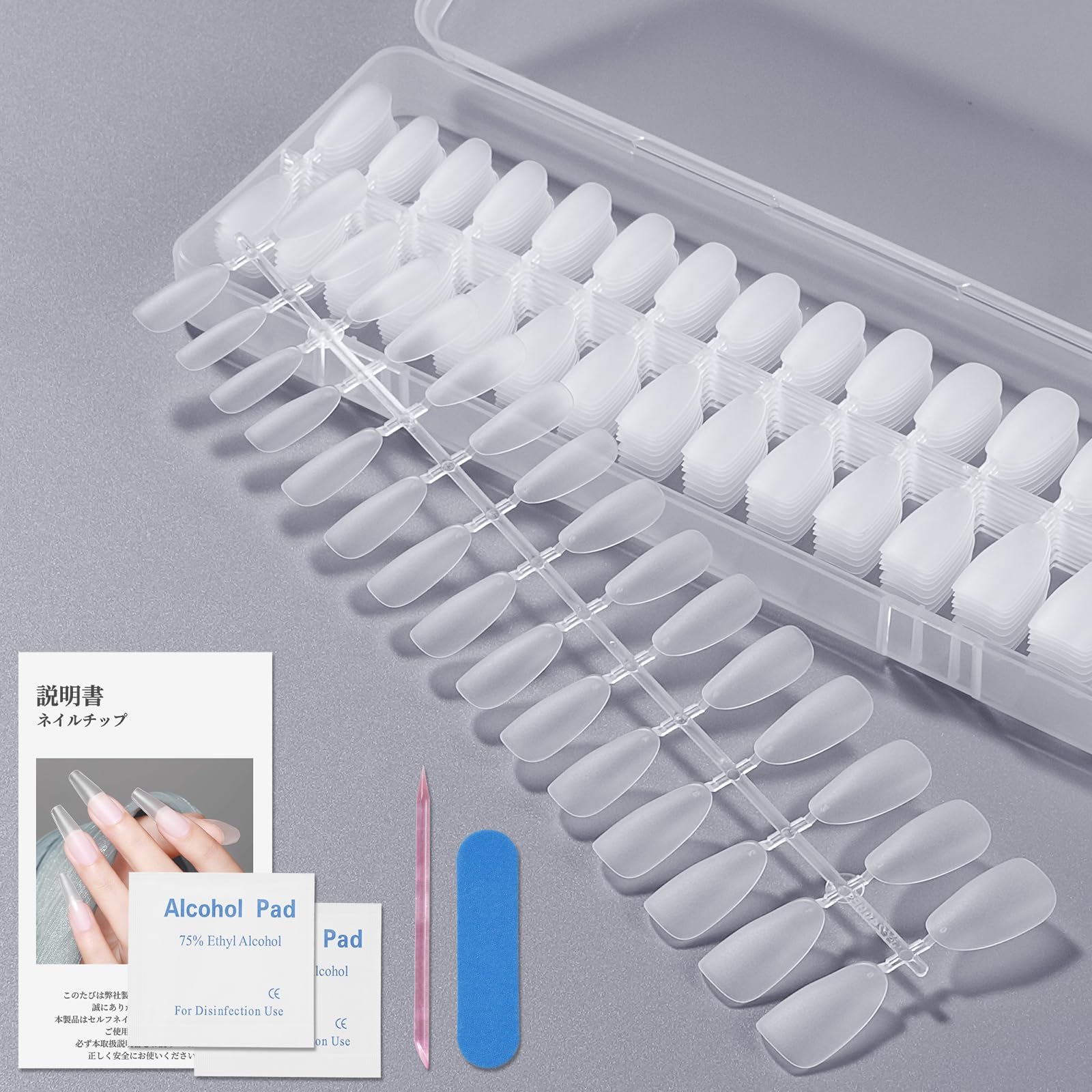 【大容量&マルチに使える】本製品は合計300枚入りの大容量セットで、繰り返しの練習や多彩なデザインに挑戦するのに十分な量を確保。透明タイプの付け爪は、長い爪を維持できない方の代替アイテムとして便利で、自分好みにデザインできるDIYネイルにも最適です。セルフネイルはもちろん、ネイルサロンのサンプル展示やスクールの練習用としても活躍。家でも外出先でも手軽に使え、コスパも優秀。
