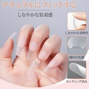 【本爪を守りながら美しく】しなやかな柔軟性と先端の程よい硬さを兼ね備えたつけ爪チップで、装着中の折れや変形を防止。自爪への負担を最小限に抑え、やさしく守ります。爪が弱い方や、ダメージを受けた指先の補修にもぴったりで、ケアしながらおしゃれが楽しめます。