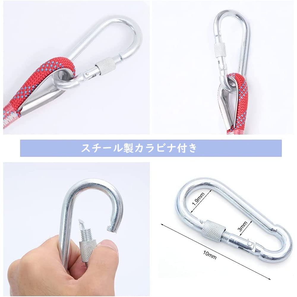 focous 多目的ロープ 10mm 10M/20M/30M 引張力2100kg 48本ナイロン芯 アウトドア キャンプ 樹木伐採 窓清掃 カラビナ2個付き (20M)