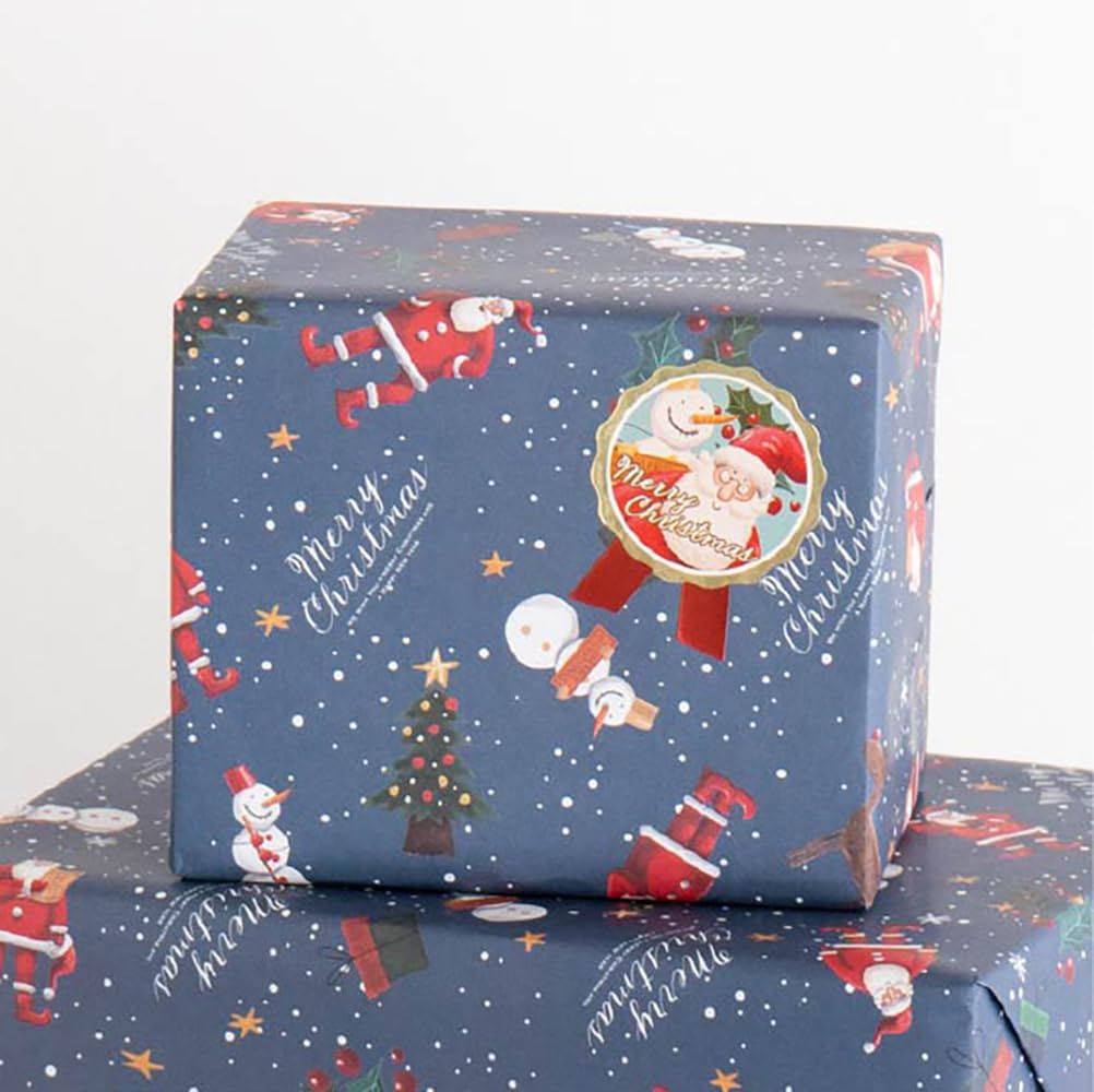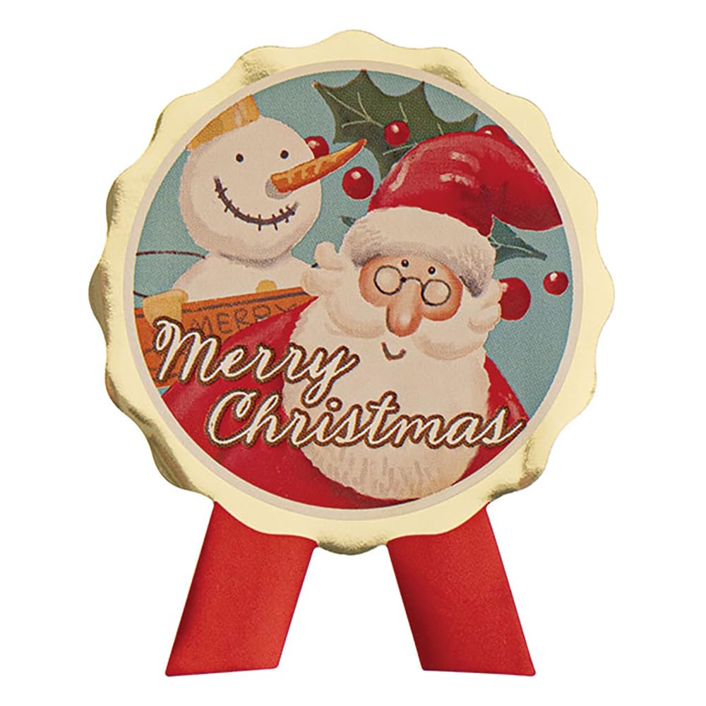 愉快なサンタクロースとスノーマンが可愛いクリスマスのリボン型シールです。貼るだけで簡単にクリスマスギフトの完成です。はがれやすい梨地素材にもお使いいただける強粘着タイプのクリスマスギフトシールです。