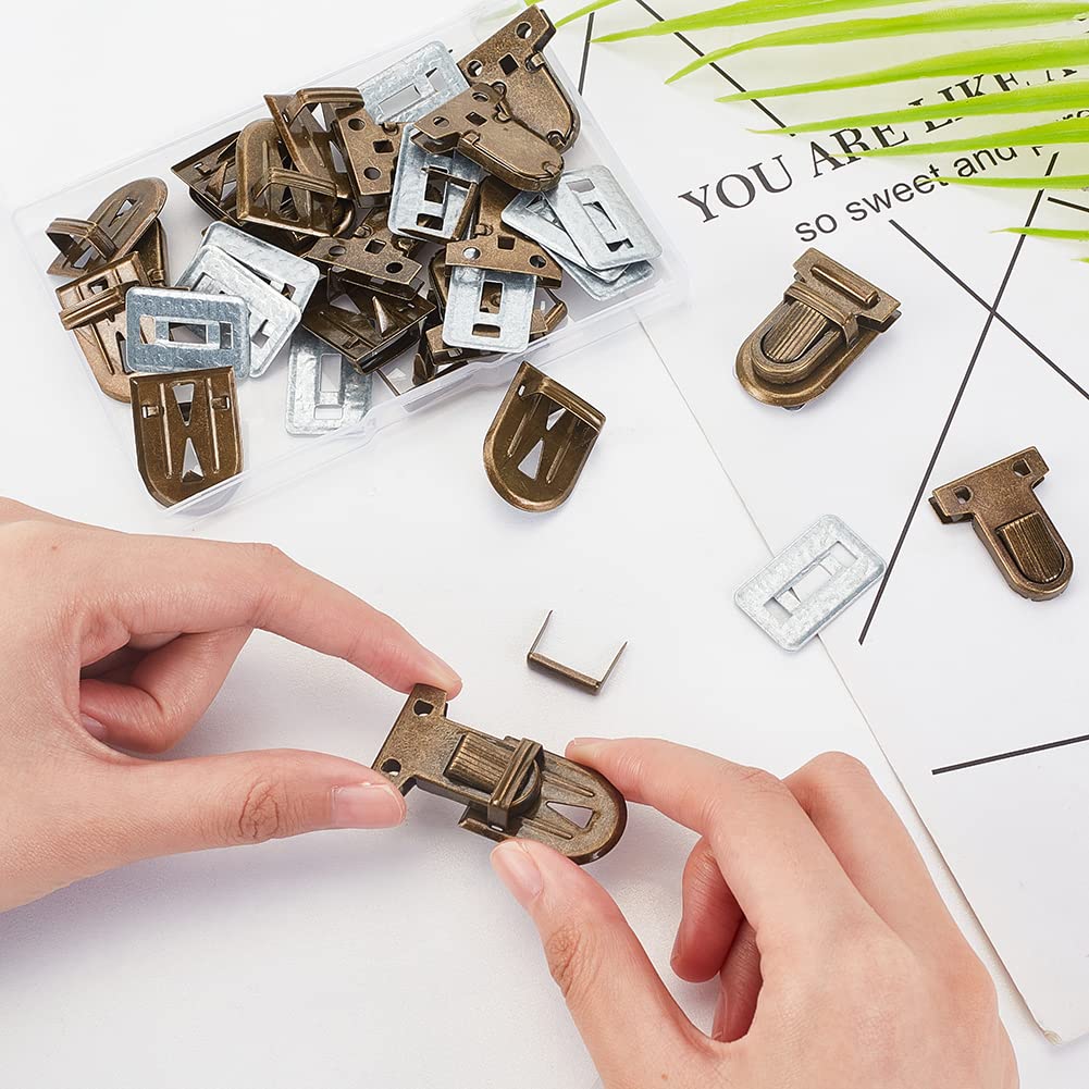 [PH PandaHall] 10セット 鉄製 バッグ用留め具 バッグ留め金 差込錠カシメタイプ バッグ 差込み錠 バッグパーツ 引きカン金具 バックル 接続 金具 金属 パーツ レザークラフト アクセサリーパーツ 手作り素材 アンティークブロンズ