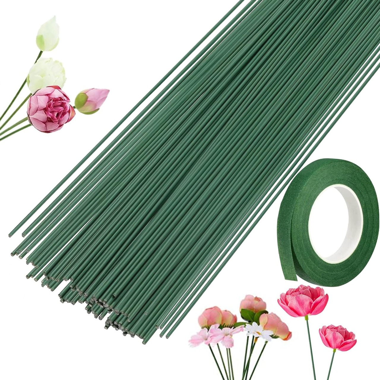EDu 手芸モール 造花 50本 フラワーワイヤー 地巻ワイヤー 花芸素材ギット 手作りキット 造花材料 曲げ可能 手芸用ワイヤー 造花 花束 30cm*2.2mm